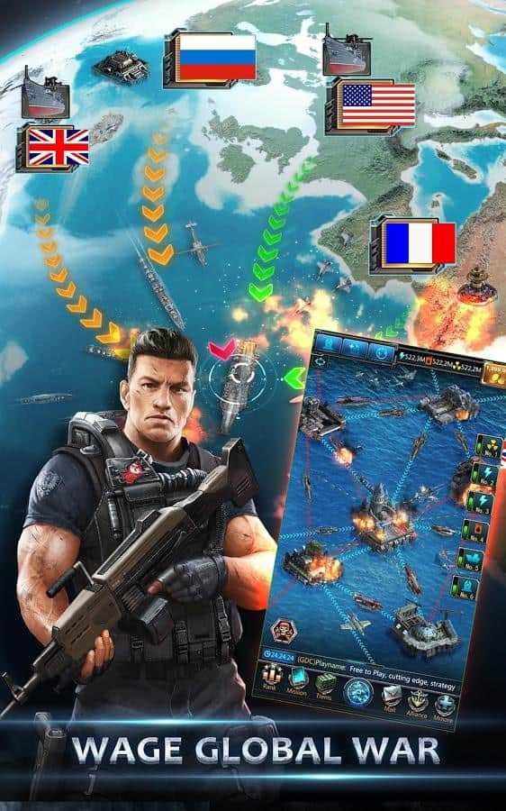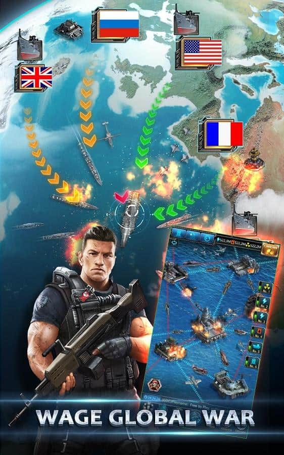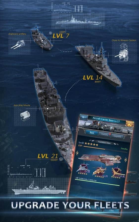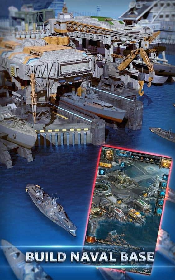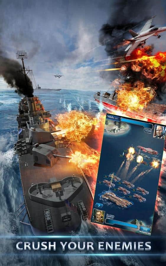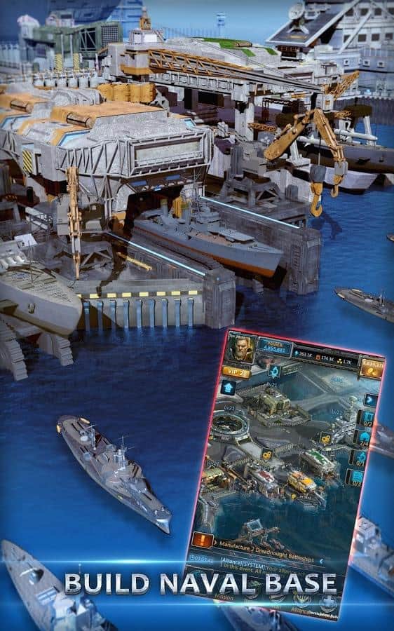 Warships: Naval Empires – стратегия на андроид, где вы примите свое участие в морских баталиях. Эта игра перенесет вам в постапокалиптический мир будущего, где мировой океан увеличил уровень воды и затопил все земли. Теперь выжившие после апокалипсиса люди должны сражаться за небольшие участки земли и ценные ресурсы. Постройте свой огромный флот, который будет состоять из различных кораблей, крейсеров, линкоров и воздушной авиации. Разрабатывайте свою тактику ведения боя и приведите свой флот к победе. Объединяйтесь в альянсы с другими игроками со всего мира и сражайтесь за право господствовать в этом мире.