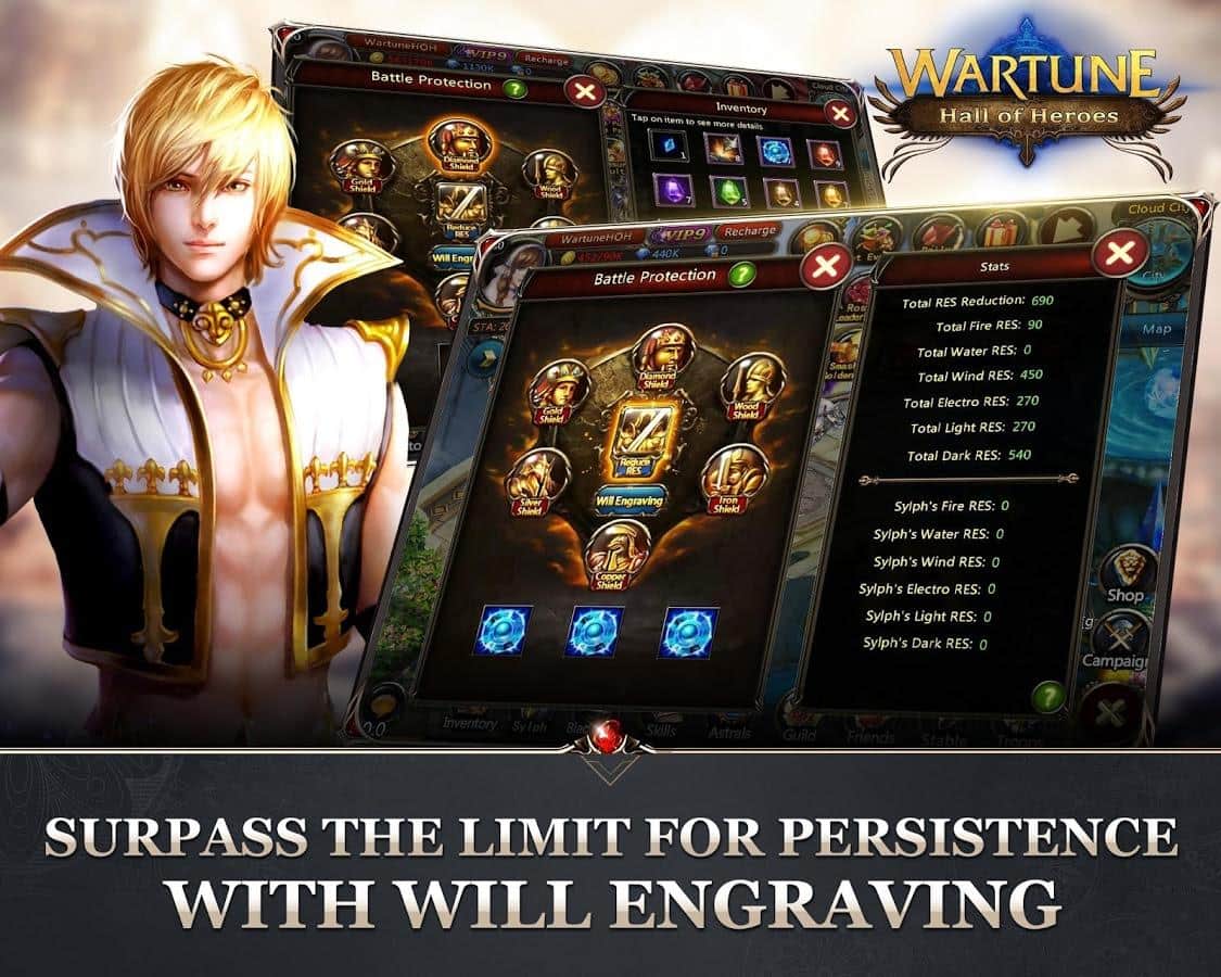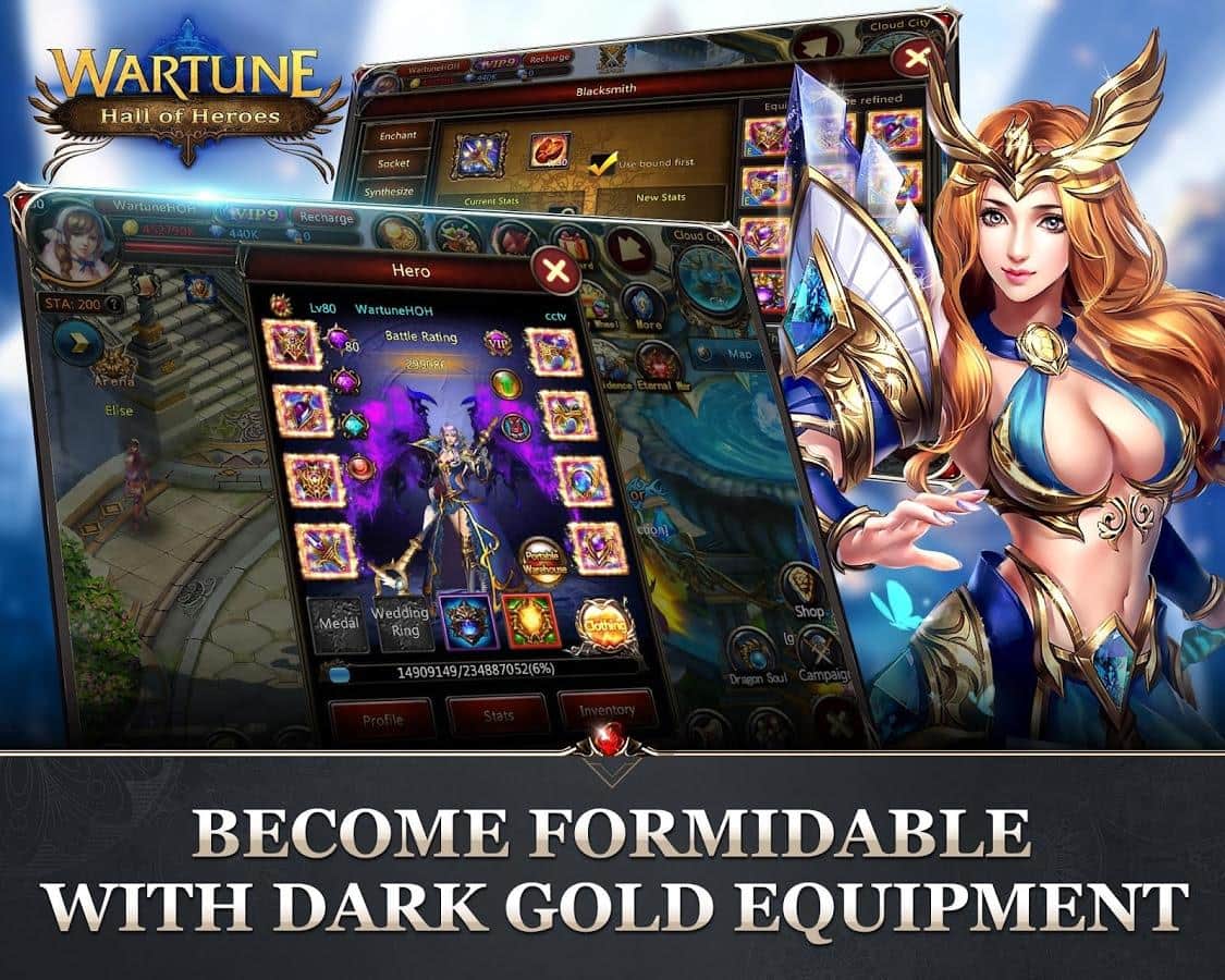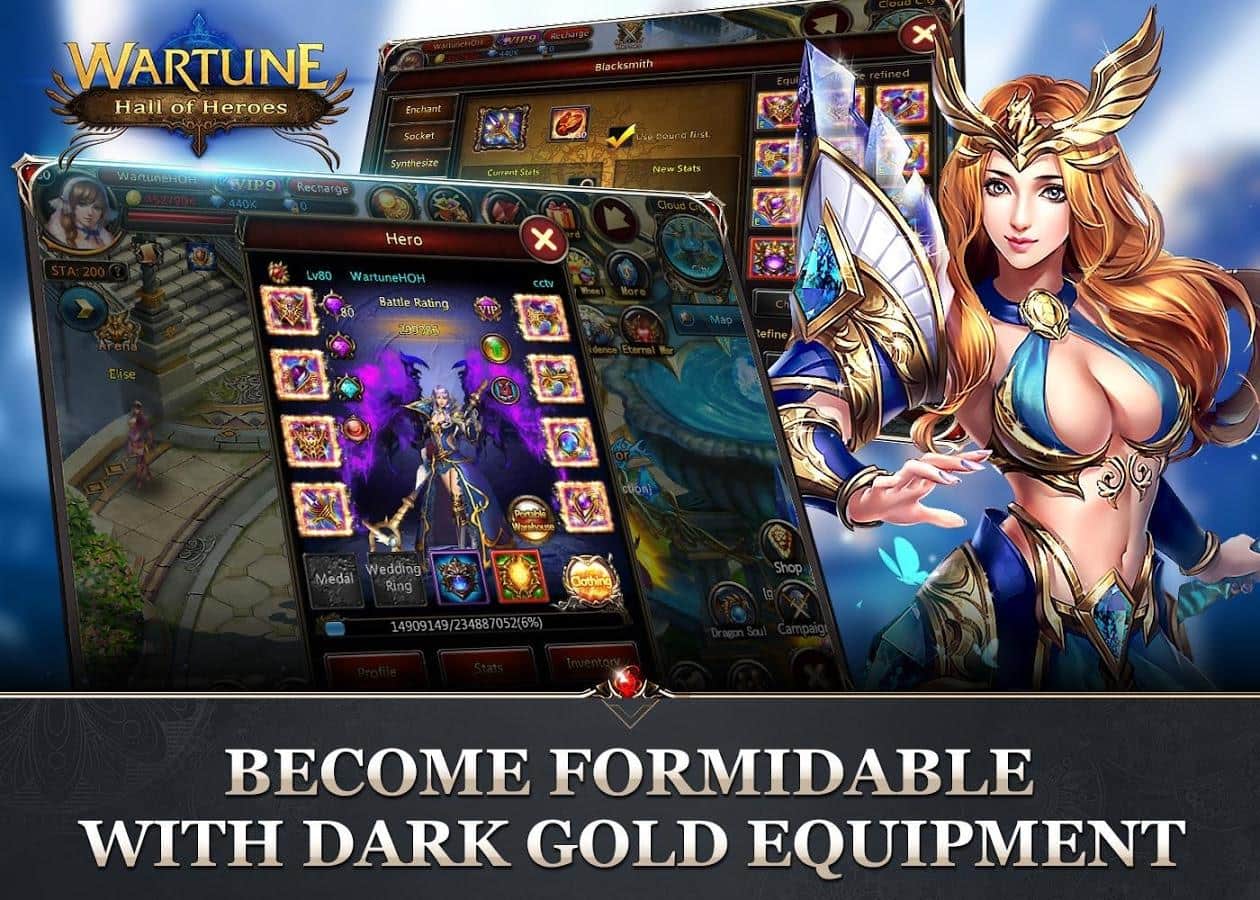 Wartune: Hall of Heroes - многопользовательское РПГ на андроид, где вы будете испытывать свою судьбу в зале героев. Соберите самых лучших бойцов, сформируйте из них гильдии и сражайтесь против врагов. За кого вы будете сражаться выбирать вам вы можете быть отважным рыцарем или могущественным магом который не пожалеет своих сил в борьбе со злыми монстрами. Приобретайте новое оружие, а также мощное снаряжение и собирайте редчайшие капли лута для большей власти над миром.