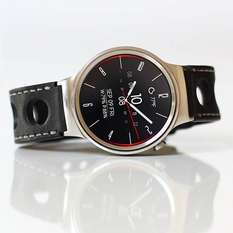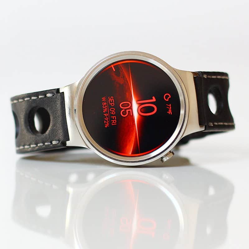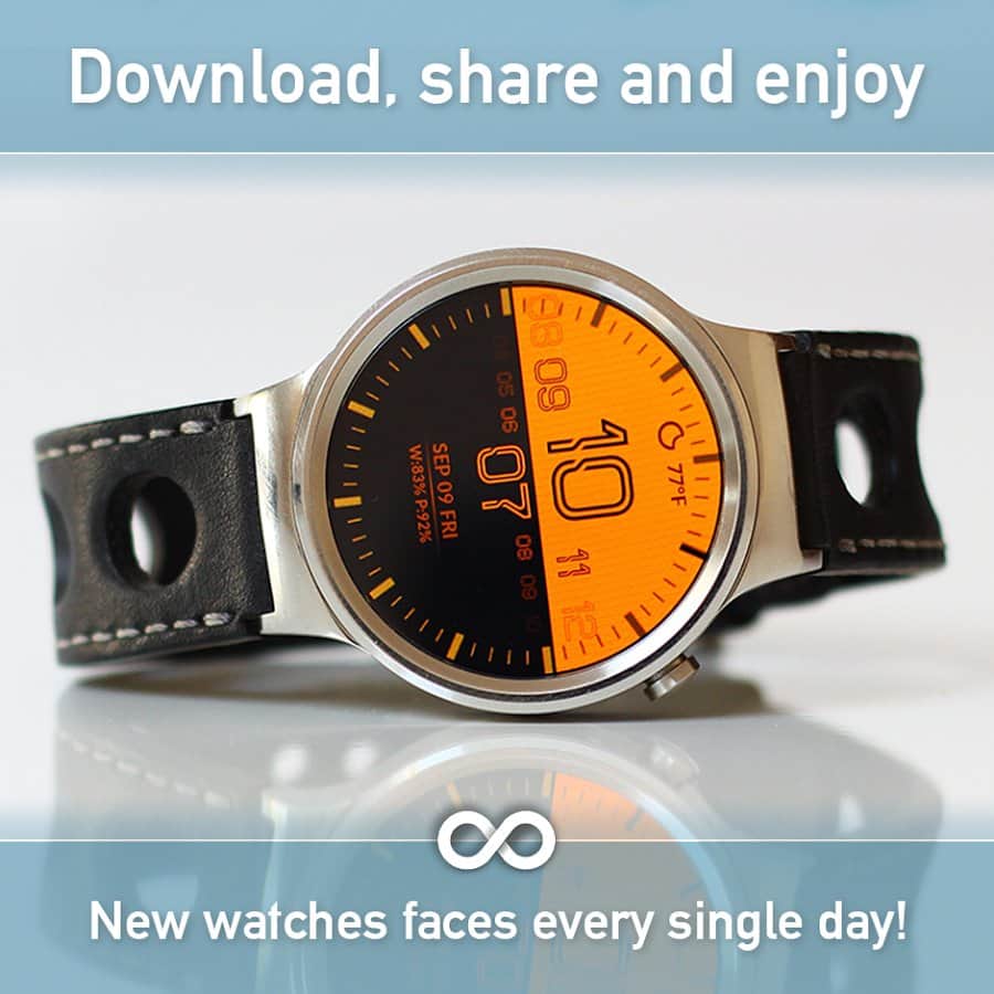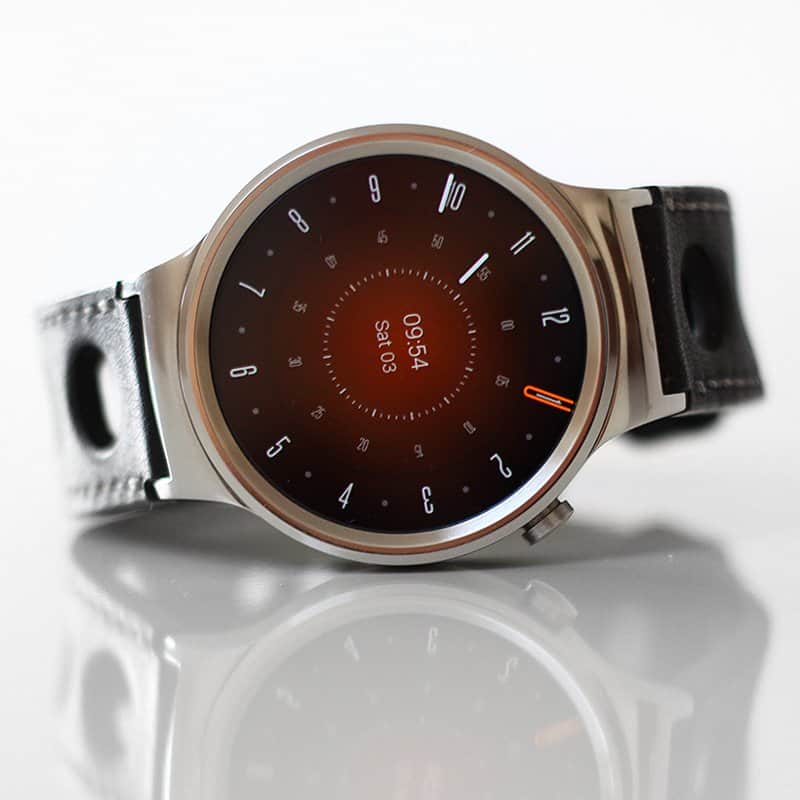 Перед вами симпатичный циферблат для Android Wear с нестандартным — горизонтальным — расположением временной шкалы, впрочем, от этого он не становится менее понятным.