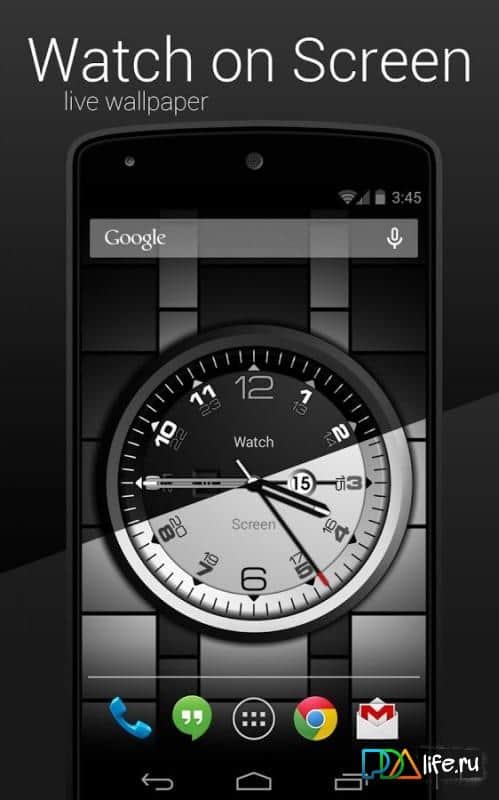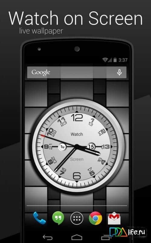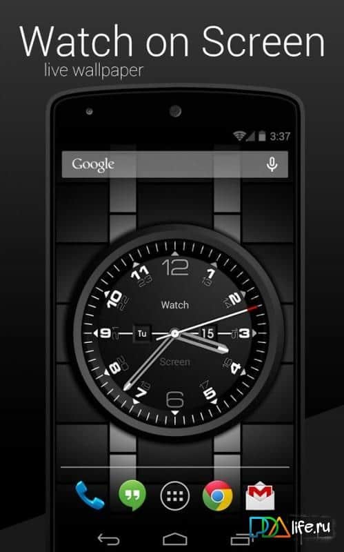 Watch on Screen – живые обои с часами различного дизайна. В приложении представлены именно аналоговые модели часов. Большое количество циферблатов на любой вкус и цвет, вы однозначно останетесь довольны. В отличие от подобных виджетов, часы видны даже при заблокированном телефоне. Обои имеют настройки с большим количеством изменений, которые позволят максимально индивидуализировать их. Присутствует ночной режим отображения часов. Можно выставить чтобы показывалась сегодняшняя дата и день недели. Присутствует масштабирование часов, всегда можно увеличить их размер да необходимого.