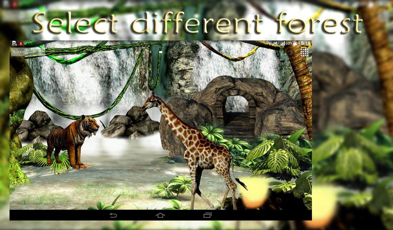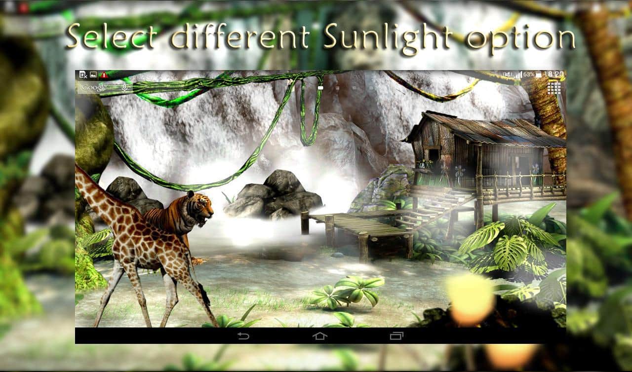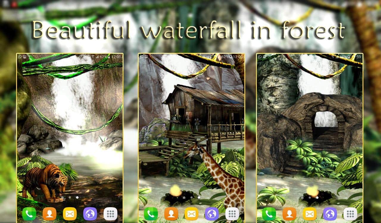 Waterfall 3D Live Wallpaper – живые обои стали одним из основополагающих атрибутов по персонализации своего мобильного гаджета. На этот раз мы вам предлагаем вам познакомится с дикими джунглями, где солнечный свет приятно проходит сквозь кроны деревьев. Птицы порхают, тигры ходят и даже жирафы могут появится. Ко всему это можно добавить ещё и водопад. Также вы можете взаимодействовать с живыми обоями и менять их настройки. Погодные условия также можно изменить на те, которые больше подходят вашему настроению в данный момент. Обои прекрасно дополнят ваш смартфон.