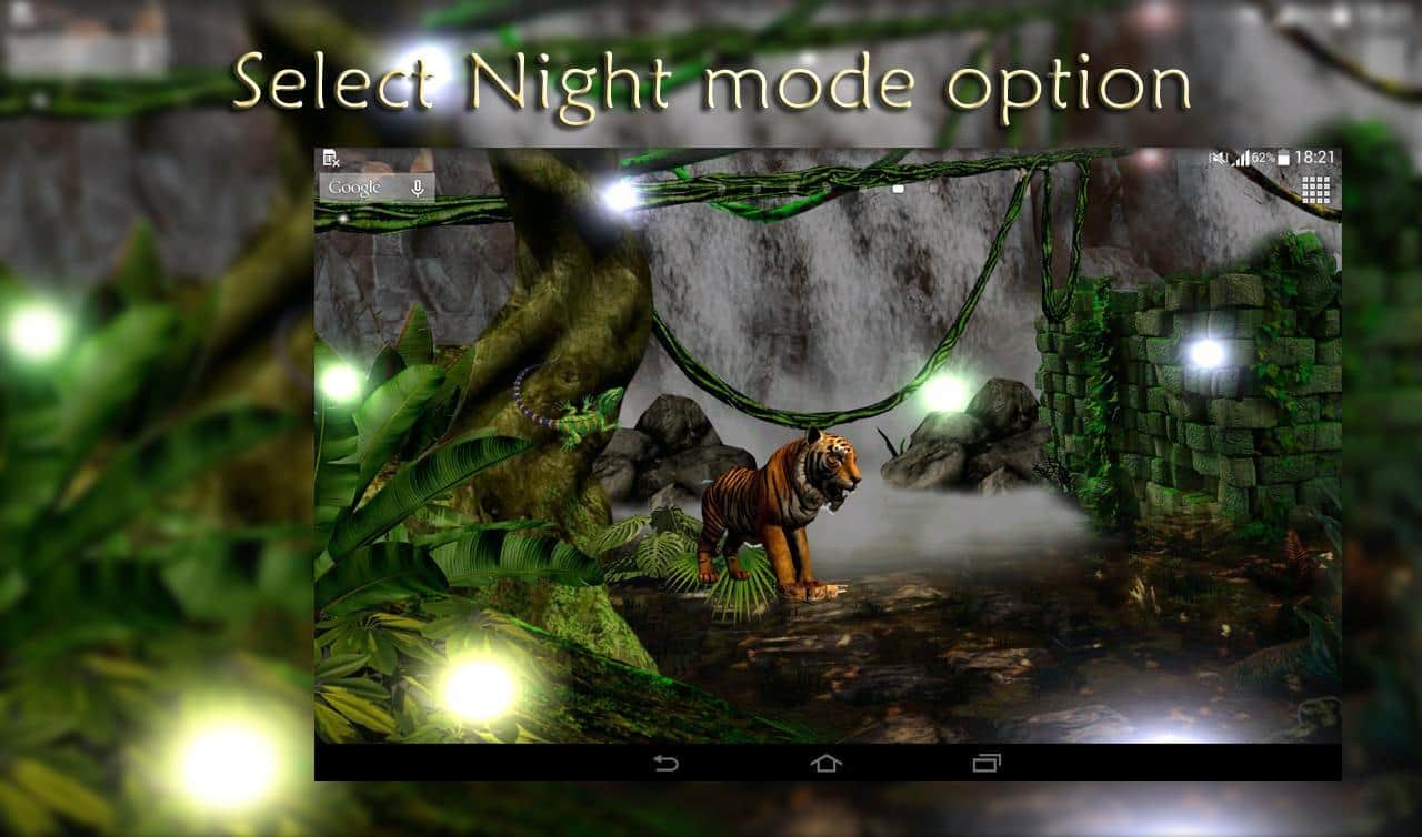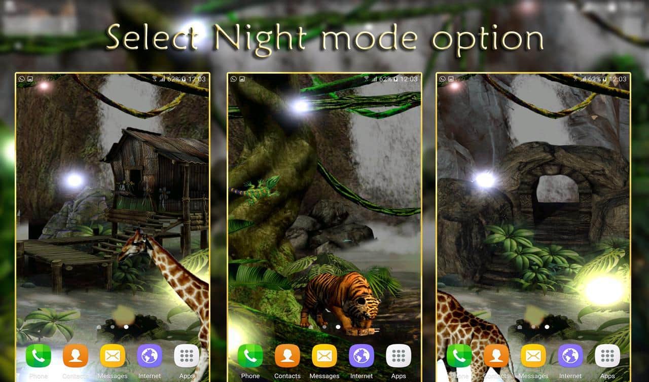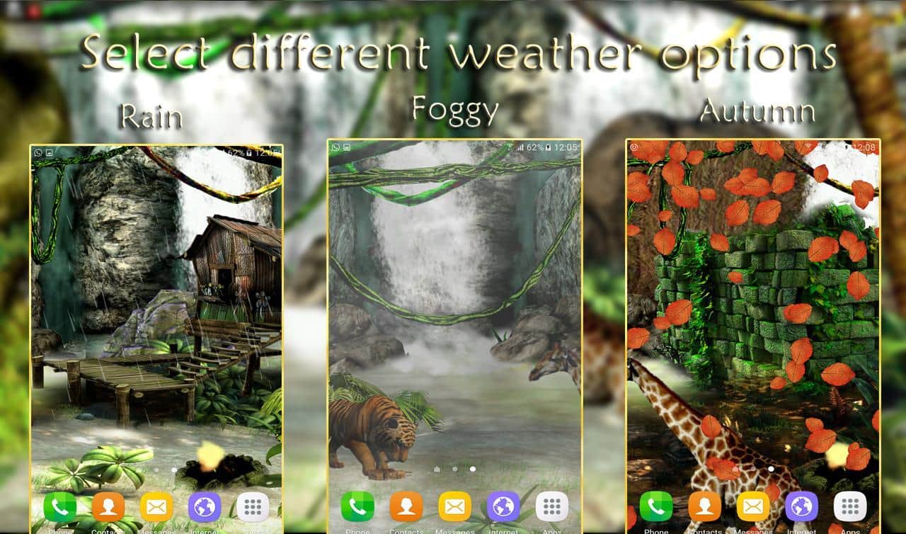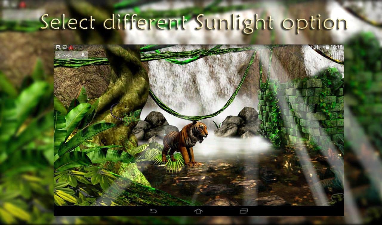 Waterfall 3D Live Wallpaper – живые обои стали одним из основополагающих атрибутов по персонализации своего мобильного гаджета. На этот раз мы вам предлагаем вам познакомится с дикими джунглями, где солнечный свет приятно проходит сквозь кроны деревьев. Птицы порхают, тигры ходят и даже жирафы могут появится. Ко всему это можно добавить ещё и водопад. Также вы можете взаимодействовать с живыми обоями и менять их настройки. Погодные условия также можно изменить на те, которые больше подходят вашему настроению в данный момент. Обои прекрасно дополнят ваш смартфон.