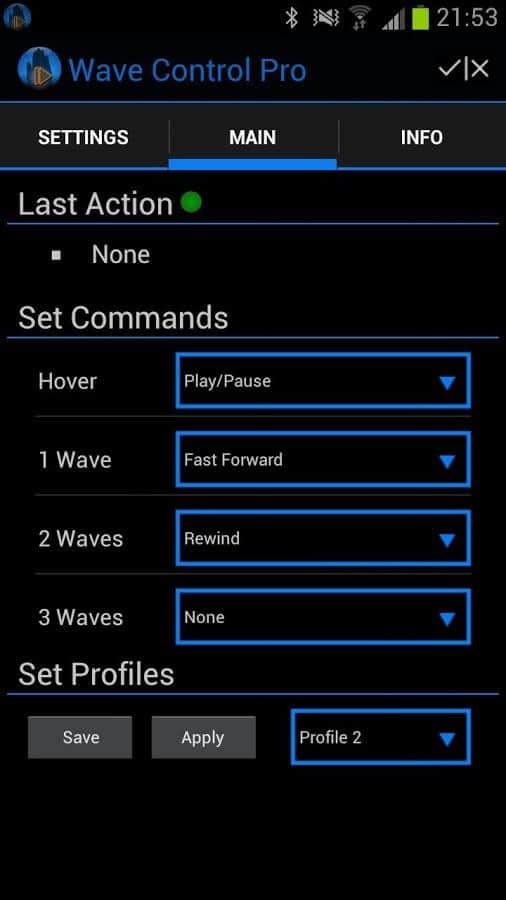 Wave Control Pro - Весьма занятное приложение которое позволит вам управлять смартфоном даже не касаясь его! Суть данного приложения состоит в том, что вы можете настроить "волну" и проводя рукой перед камерой в вашем смартфоне, эта волна будет срабатывать. В зависимости от ваших потребностей вы можете установить на это любую функцию. К примеру на одну волну, поставим запуск аудио плеера, на две волны поставим запуск и паузу музыки, а на три волны поставим переключение песен вперед. Вот у нас и готов настоящий бесконтактный аудио проигрыватель. Все функции зависят только от вашего воображения.