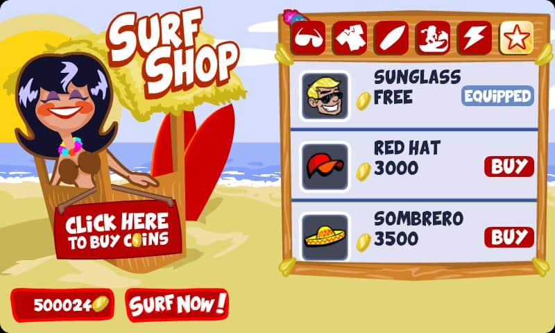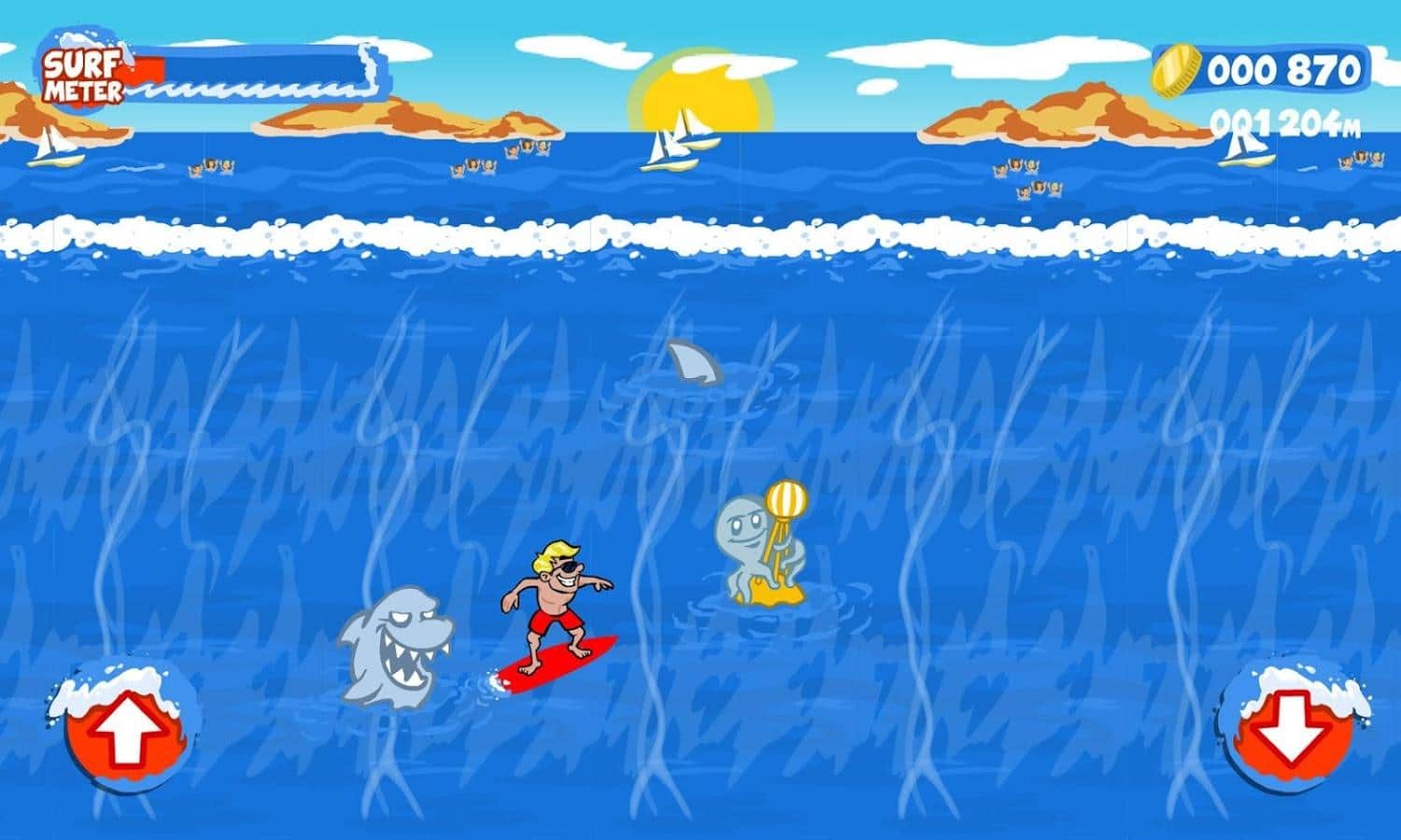 Wave Riders – веселая игра на андроид, где вам предстоит управлять серфингистом. Ваш отважный серфингист мчится по волнам на доске и исполняет головокружительные трюки. Помогите ему преодолеть все препятствия на своем пути в виде голодных акул, чаек и других преград, а также собирайте золотые монетки и бонусы. Ездите на доске для серфинга и на гидроцикле и получите силу бога серфинга. Приобретайте снаряжение на собранные монетки и забавные костюмчики для героя. Катайтесь по огромным волнам и понимайтесь все выше в таблице лидеров, добиваясь наилучших результатов. Играйте и получайте удовольствие от игры.