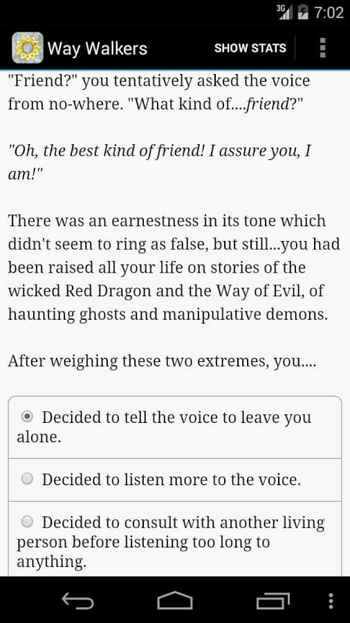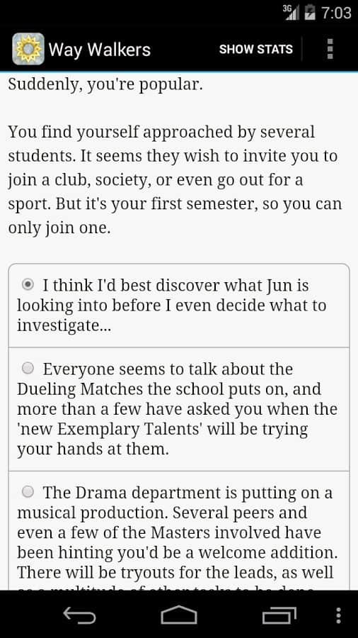 Way Walkers: University – интерактивный роман на андроид, где вы перенесетесь в необычный город где будете обучатся в магической школе. В этой игре вы будете осваивать различные способности, сражаться с сильными монстрами, вести охоту на призраков, перемещаться и исследовать захватывающий город, который полон различных персонажей и многочисленных миров. Отправляйтесь в увлекательное путешествие прямо сейчас и погрузитесь в удивительный мир, основанный на тексте без графики и звуков, где вам придется подключать свою фантазию и силу воображения. Станьте лучшим магом и сделайте правильно свой выбор.