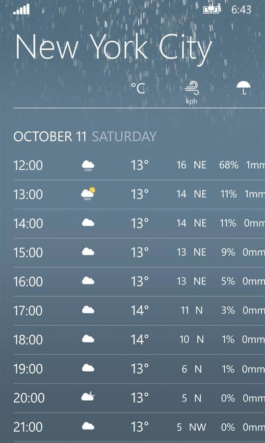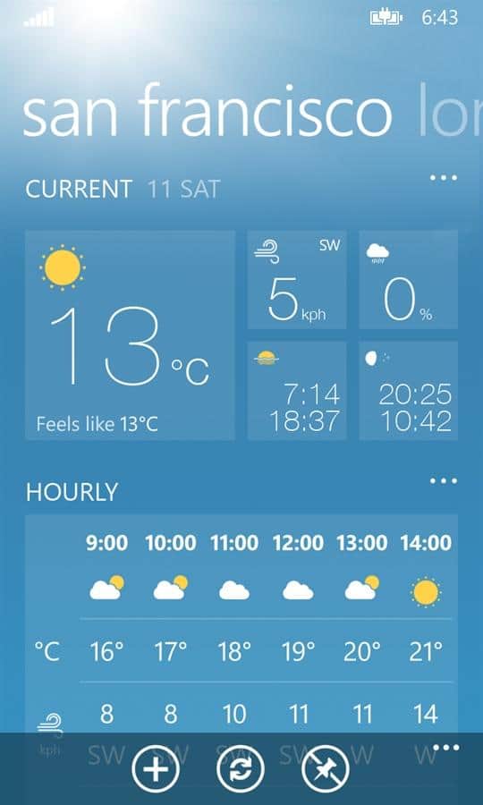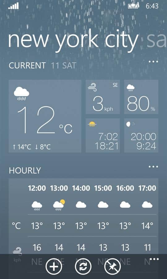 Weather Flow – красивый прогноз погоды для вашего Windows Phone 7.5, с отображением погоды на текущий момент, атак же подробным по часовым изменением на день и на 5 дней вперед. Есть возможность установления тайм-аута обновления погодных условий.