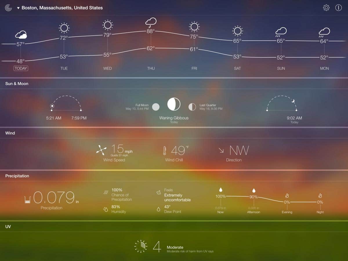Weather live / Погода Live - Это приложение выдаст вам максимально точный прогноз погоды на каждый день на целую неделю вперед. И хотя это довольно простое приложение для показа прогноза погоды, все же сделано оно на высшем уровне, и собирает информацию сразу из нескольких источников.