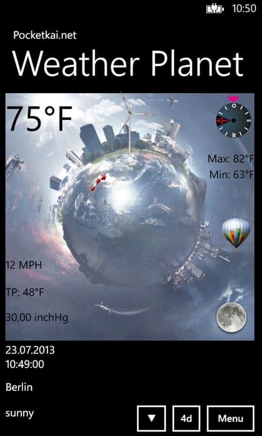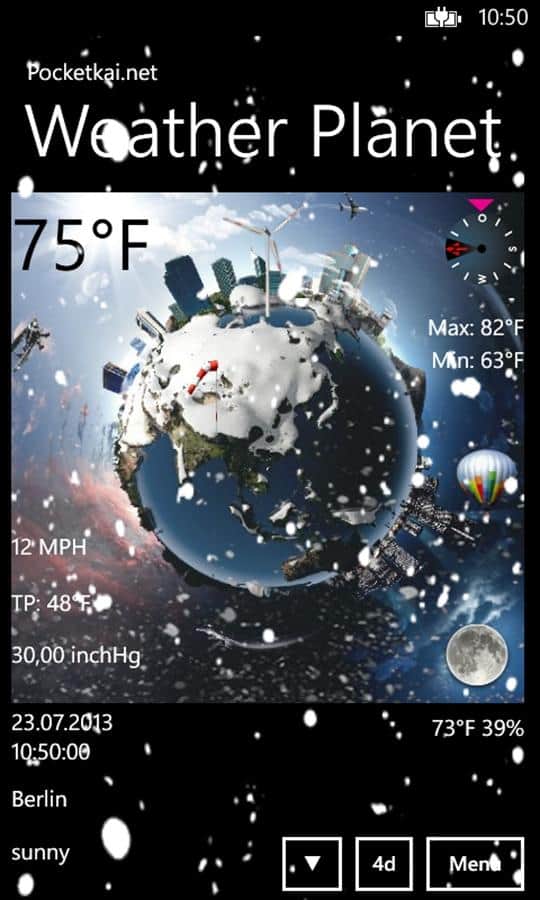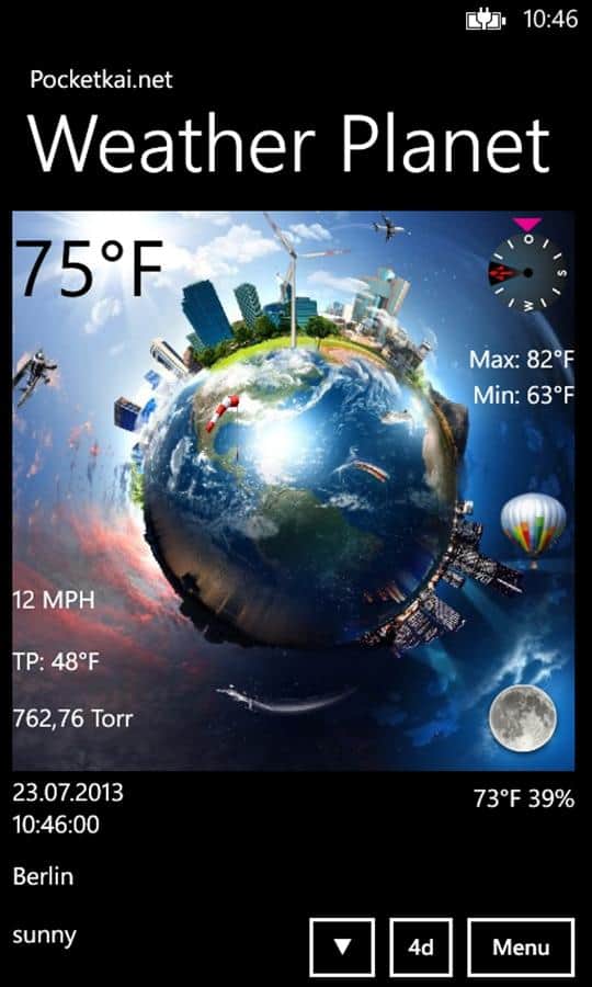 Weather Planet - используйте свой телефон на windows phone как реальную метеостанцию. Которая показывает температуру, влажность, скорость ветра, направление ветра и барометр больше значений вы вряд ли где сможете встретить. Благодаря такому дизайну наблюдать погоду теперь стало намного интересней и увлекательней.