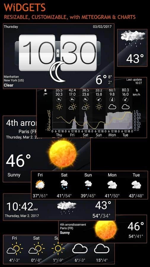 Weather Services PRO - На первый взгляд может показаться что это вполне обычное приложение, которое показывает погоду и ничего больше. И так оно и есть, однако это приложение весьма не простое. Не многие могут похвастаться тем набором данных которые они могут предоставить своим пользователям. Так вот данная программа, вполне бы могла претендовать на одну из лучших в своей категории. Вы сможете просматривать прогноз по дням, при этом не нужно даже запускать приложение, вся информация о погоде будет выводится в ваших оповещениях, от скорости ветра до влажности. Так же здесь есть одна весьма забавная функция, вы можете записывать сюда дни рождения, и приложение обязательно напомнит вам о них.
