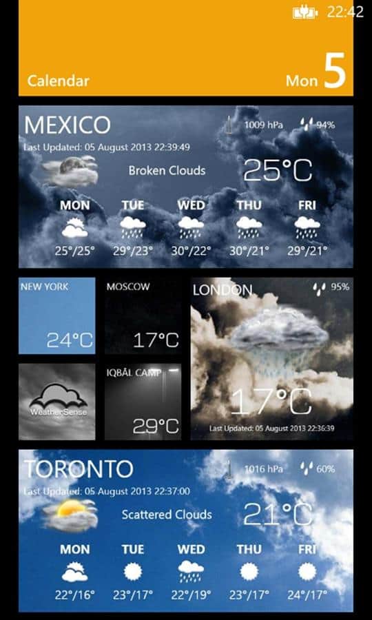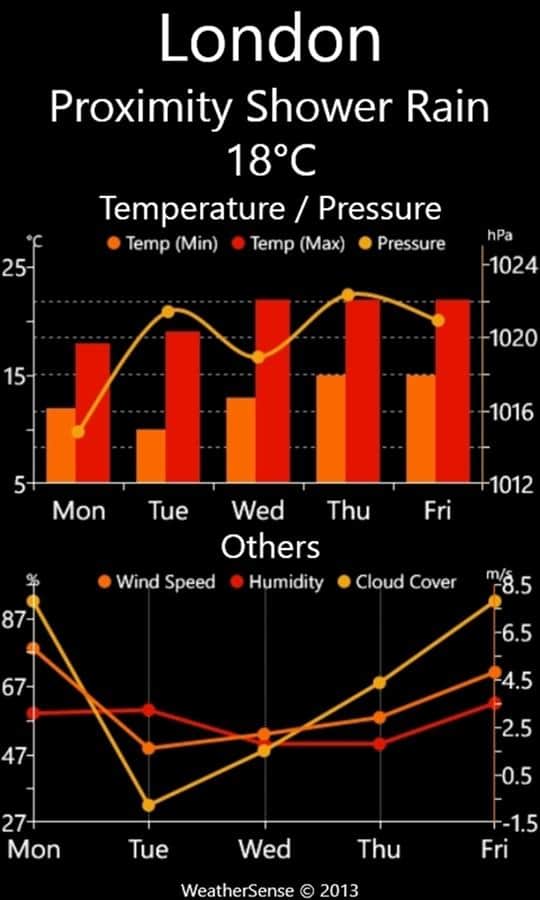WeatherSense - приложение для windows phone, с помощью которого вы сможете посмотреть детальный прогноз погоды. Благодаря данным записанным из более чем 40 000 метеостанций, которые расположены по всему миру у вас всегда будет точный прогноз погоды на ближайшие дни.