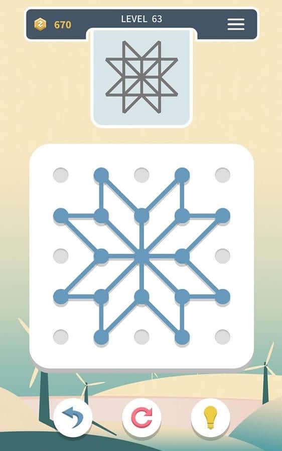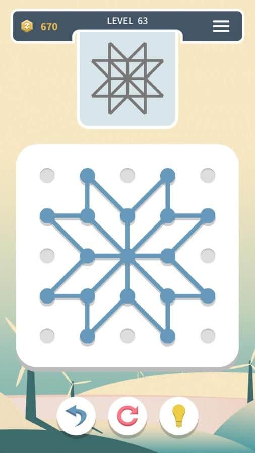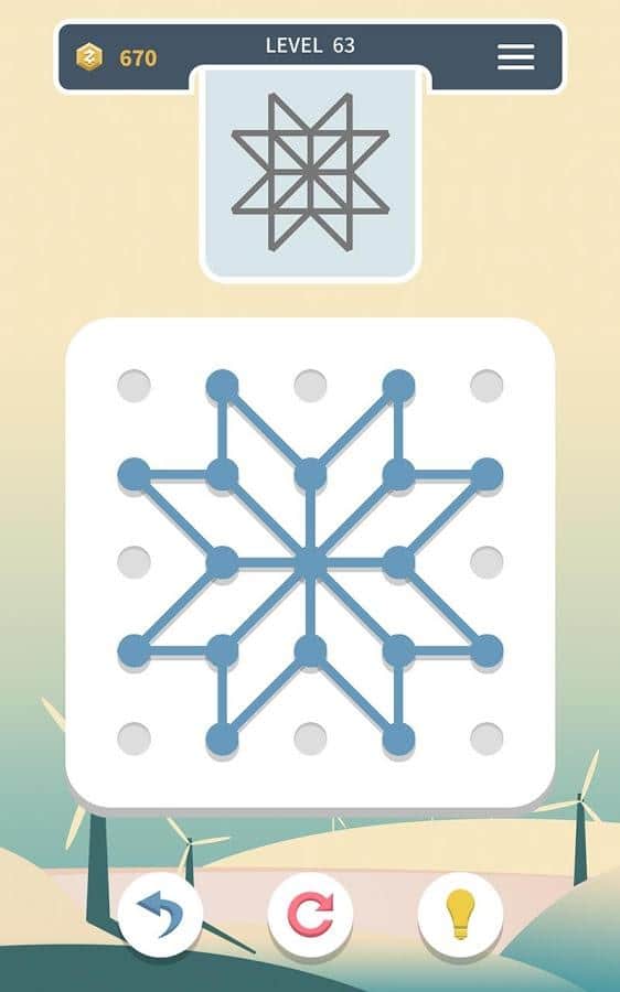 Weave the Line – увлекательная головоломка на андроид, где вы будете создавать различные фигуры. В этой игре вашей задачей будет создавать фигуры по образцу, перетаскивая линии в точку и разделяя ее на две, тем самым создавая новые линии. Повторяйте все действия несколько раз и создавайте невероятные фигуры и узоры, которые потребуют от вас полной концентрации и внимания. Решайте непростые задачки и создавайте одинаковые модели. В игре представлено три режима игры: