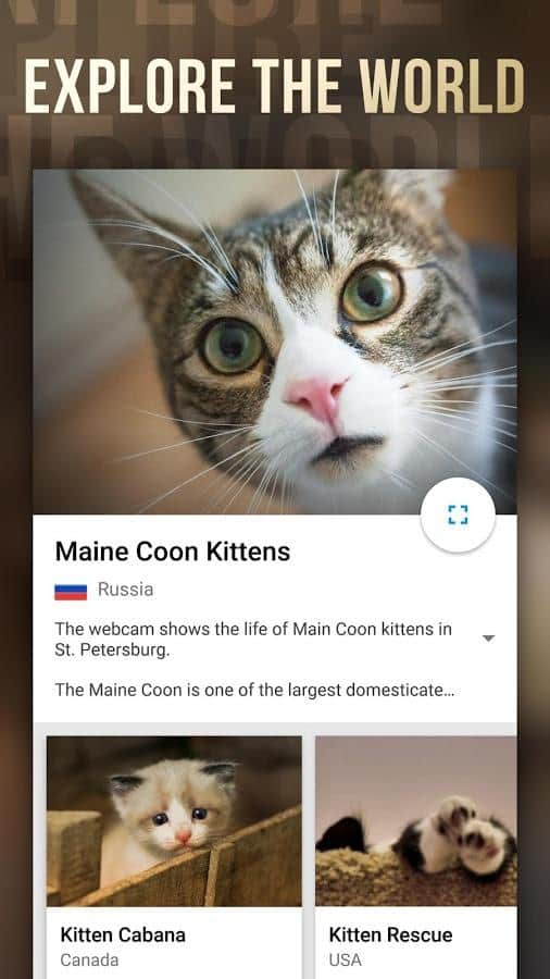 Webcam World View поможет заинтересованным путешественникам при помощи скрытых камер найти самые интересные природные места и памятники архитектуры на нашей планете и запечатлеть их во всей красе. Наличие карты мира и пунктов с камерами видеонаблюдения позволят увидеть уникальные кадры, не имеющие аналогов. В ваше поле зрения могут попасть необычайно большие и величественные горы, прекрасные водопады, гейзеры, самые глубокие реки и озера, Марианская впадина, вид Земли из космоса и многое другое. Наблюдая за животными, можно созерцать их вымирающие виды, занесённые в Красную книгу. Все трансляции ведутся в онлайн-режиме круглосуточно, что не даст вам упустить самые запоминающиеся моменты жизни!