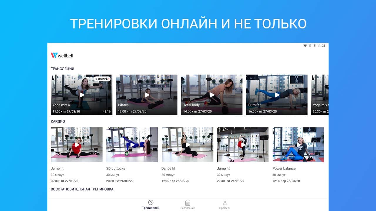 Wellbell — фитнес дома - Пора начать регулярно заниматься спортом, в особенности если дело касается настоящих рекомендаций от профессиональных тренеров! Найдите интересное занятие себе по душе: фитнес, йога, кардио, силовые, гимнастика, восстановительные, прочее. Всегда найдется время для тренировок, поэтому заранее планируйте время на определенные занятие и наблюдайте за ними в календаре, повышая собственную статистику. Мотивация приходит мгновенно, ведь окружение меняет ваше настроение и заставляет двигаться только вперед.
