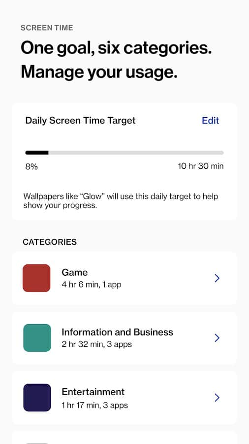 WellPaper -Хотите использовать живые обои и при этом знать на что вы постоянно тратите свое драгоценное время, а также заряд батареи? Это приложение будет вашим удобным спасением, ведь оно включает в себя сразу эти две функции! Просмотрите доступные фоны и выберите понравившееся, по минимуму тратьте аккумулятор на сами обои, следите за посещением телефона и ограничьте себя от ненужного времяпровождения. Приложение делится на 6 категорий, что очень удобно: игры, инструменты, социальное, информация и бизнес, образ жизни, развлечения.
