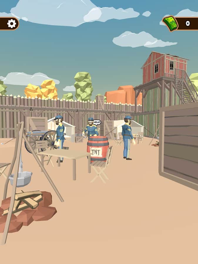 Western Cowboy: Shooting Game - Чувствуете эту музыку и лёгкое дуновение ветра? Подтвердите свой статус солидного и профессионального владельца оружия. Выживать предстоит, делая обдуманные выстрелы в противников. Перезаряжайте оружие, спускайте курок и защитите себя от смерти! Игровой процесс увлекает не только объёмной прорисовкой героев и пустыни, но и удобным механизмом управления: удерживайте прицел на цели, отпустите палец, чтобы выстрел произошёл, и всё, вы в ударе! Копите деньги, совершенствуйте своё оружие и внешний вид, чтобы покорить всех девушек города, уже сейчас.