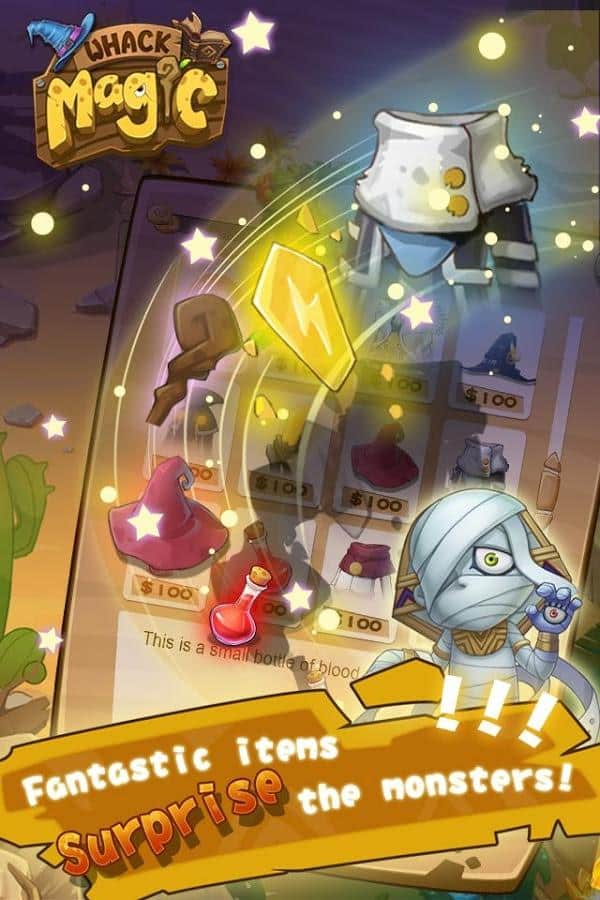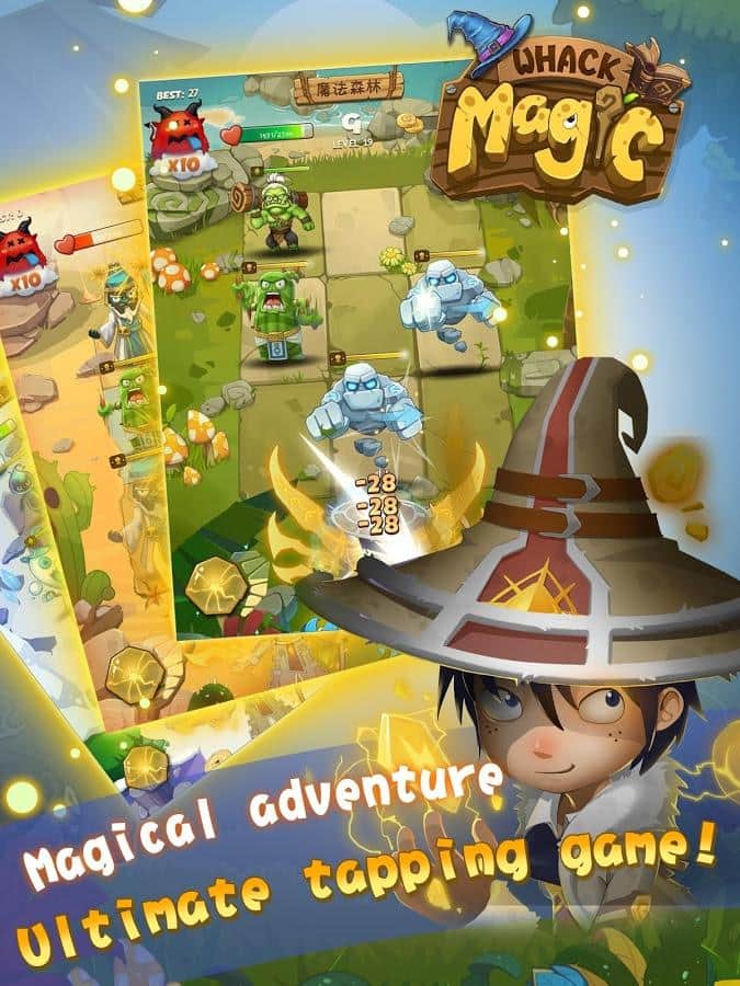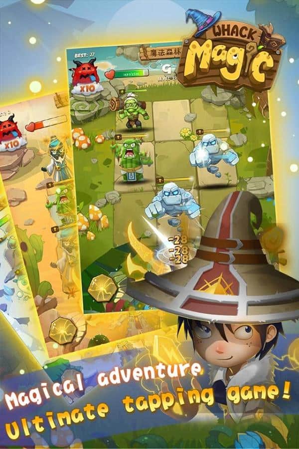 Whack Magic – головоломка на андроид, в которой вы будет помогать юному магу, победить монстров с помощью заклинаний. Перед вами находиться поле разделенной на несколько ячеек, в каждой из них время от времени будет появляться монстр, вашей задачей будет нажимать не эту ячейку, чтобы маг выполнил свое заклинание по уничтожению врага. Проверьте на деле свою реакцию и уничтожьте всех монстров. Проходите увлекательные миссии и получайте в качестве награды, новые мощные заклинания и броню. Путешествуйте по 80 уровням и примерьте на своего героя более 10 различных видов снаряжения которое поможет ему в бою.