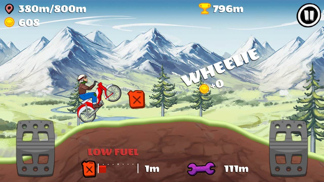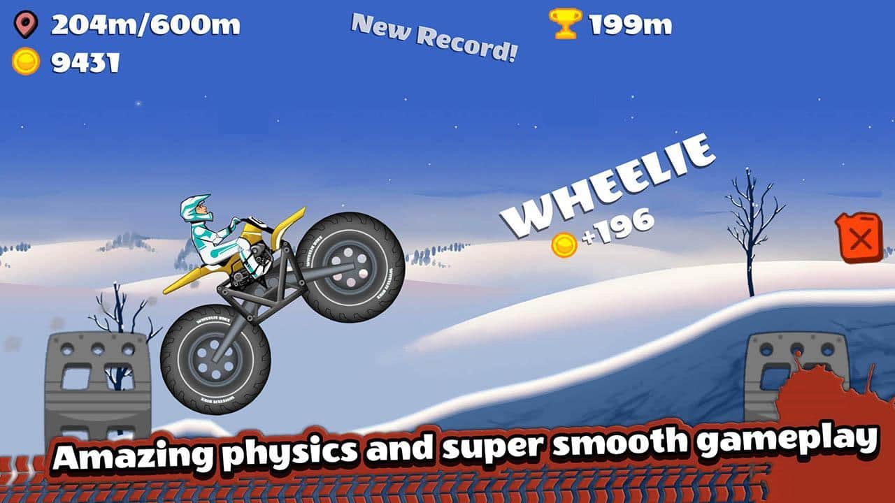 Wheelie Racing – возьмите под свой контроль мотоциклиста и проведите его по различным трассам игры. Впереди вас ждет путешествие по различным странам, где вы будете ездить по бездорожью, холмам, ледяным склона и пустыням. Вашей главной задачей в этой игре будет проехать по всем трассам, преодолевая препятствия и подлетая на трамплинах. Выполняйте головокружительные трюки и ездите на одном колесе мотоцикла, зарабатывая больше очков и получая награды. Открывайте для себя новые мотоциклы, которые будут обладать уникальными техническими характеристиками и неповторимым внешним видом.