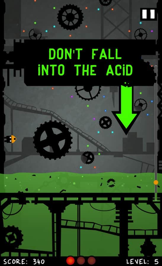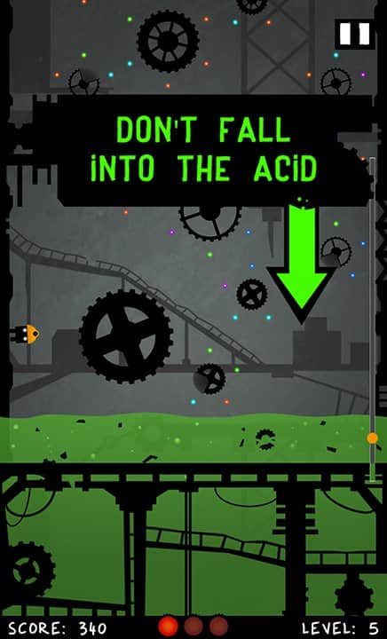 Wheels Of Survival – аркада в которой вы будете помогать шахтеру не погибнуть в шахте с кислотой. Эта нехитрая игра порадует вас разнообразными и увлекательными уровнями. Управляйте шахтером и перемещайтесь по крутящимся винтам, нажимая на экран вашего телефона или планшета. Прыгайте с одного винта на другой и делайте это как можно быстрее чтобы успеть выбраться наружу до того момента пока шахта не заполнилась кислотой. В ваших силах временно остановить подъем кислоты, собирая святящийся желтый свет. Играйте и получайте удовольствие от постоянно увеличивающейся сложности игры.