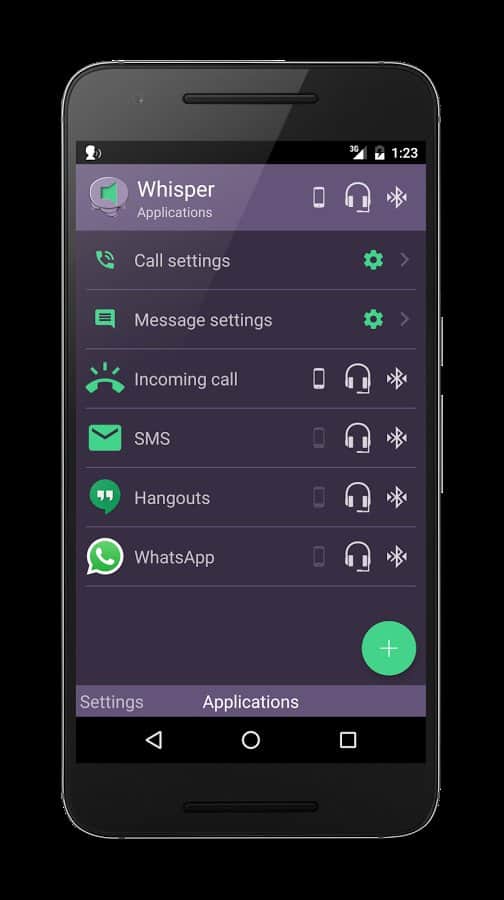 Whisper – хорошая и удобная программа для андроид с простым и понятным интерфейсом. Whisper приятным голосом озвучит имя звонящего вам абонента. А при первом запуске проанализирует контакты и скачает на SD-карту все необходимые звуковые сигналы для дальнейшей работы. Стоит отметить, что возможность ввода дополнительных звуков напрямую зависит от программных и аппаратных особенностей вашего устройства.