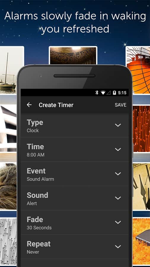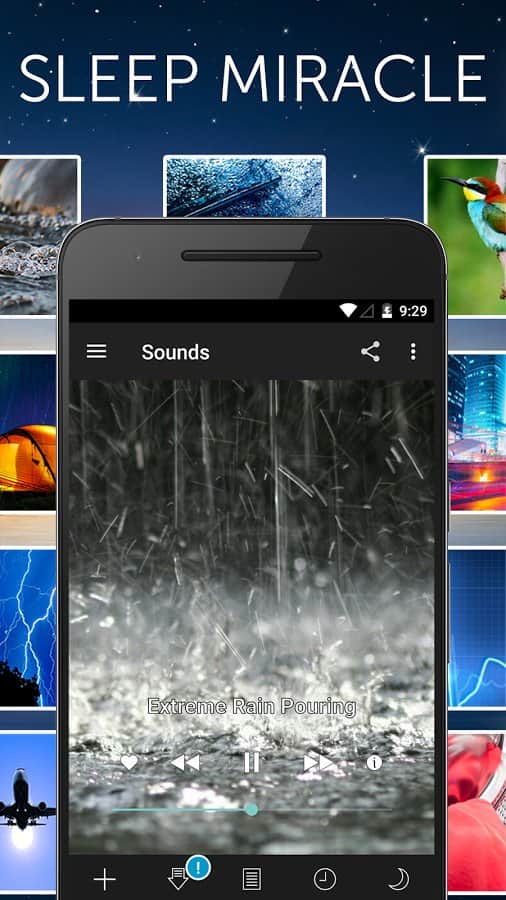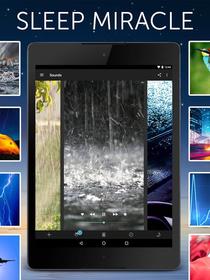 White Noise - Увлекательное приложение, которое содержит в себе множество различных звуков. Данное приложение, должно помочь вам уснуть. Вам всего то нужно включить нужные для вас звуки, костра например, или же дождя. Вообщем именно те, под которые вам будет проще засыпать. Дальше, вы настраиваете таймер отключения этих звуков, и ваш телефон автоматически выключит это приложение. А если вы поставите будильник, то он ещё и разбудит вас, теми же звуками. Вообщем приложение весьма необычное, и интересное, вполне порадует тех, кто хочет засыпать под звук костра, или грозы. Так же, есть встроенные миксер звуков, который будет делать для вас, из двух различных звуков один. Как например вы можете добавить ветер к звуку костра.