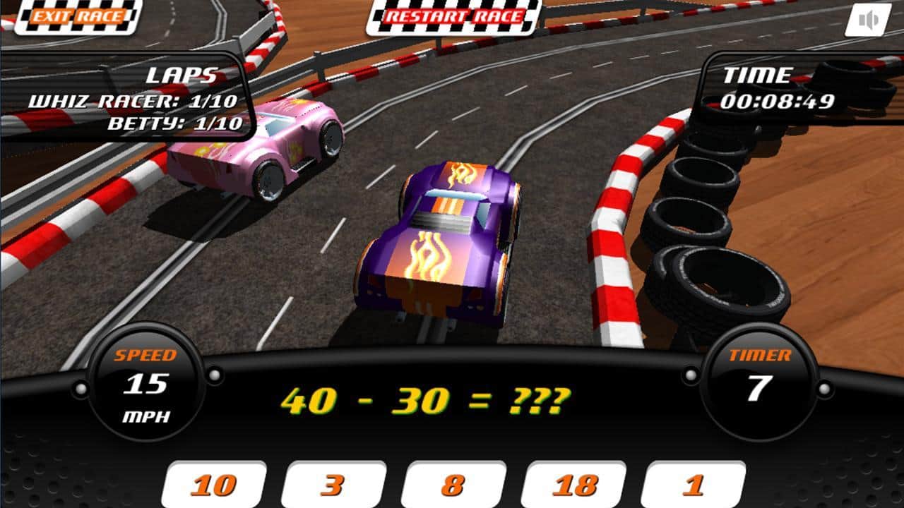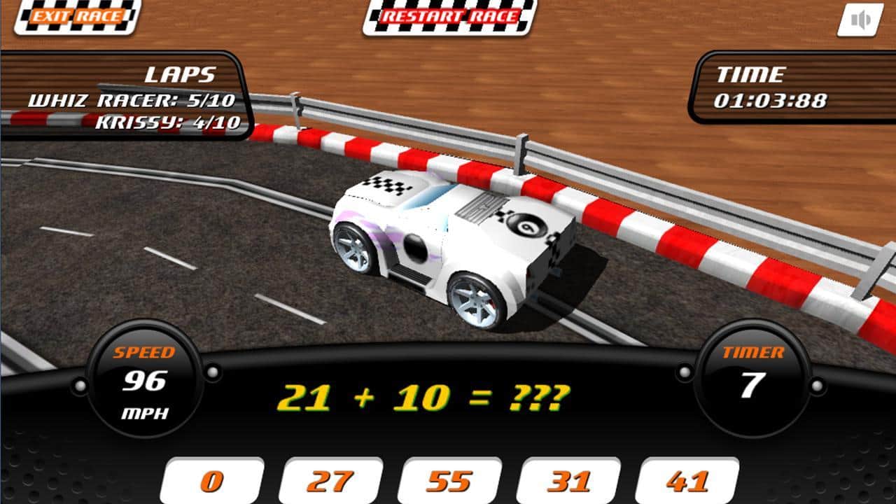 Whiz Racer - игра на андроид, в которой вам необходимо решать математические задачки, правильный ответ которых добавит вам скорости. Чтобы обогнать всех претендентов и доказать что вы самый умный, вам придется вычислять, умножать, делить и показать все свои знания в математике.