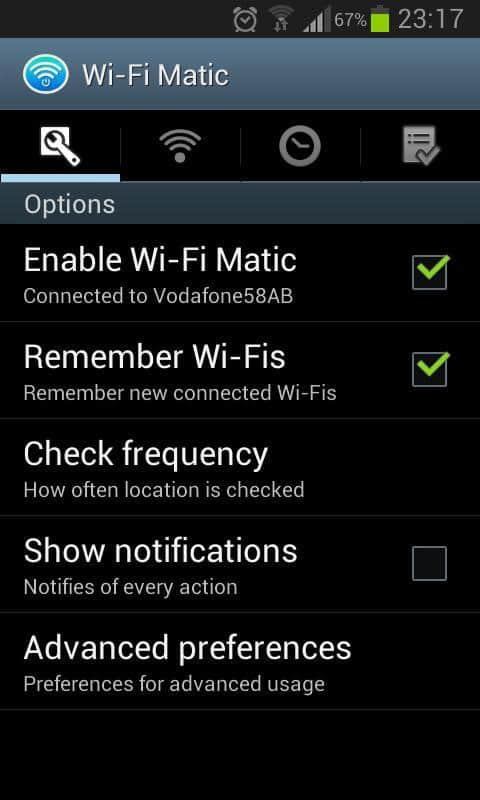 Wi-Fi Matic - Auto WiFi On Off - удобное приложение на андроид от разработчика Carlos Prados, предназначенное для автоматической активации и деактивации Wi-Fi вашего устройства в зависимости от вашего местоположения, в целях экономии заряда батареи и потребления данных через оператора сотовой сети. Wi-Fi Matic определяет и автоматически запоминает местоположения, где Вы подключаетесь к Wi-Fi, и не требует конфигурации в дальнейшем. Приложение содержит минимальные настройки и доступный интерфейс. Приятного пользования.