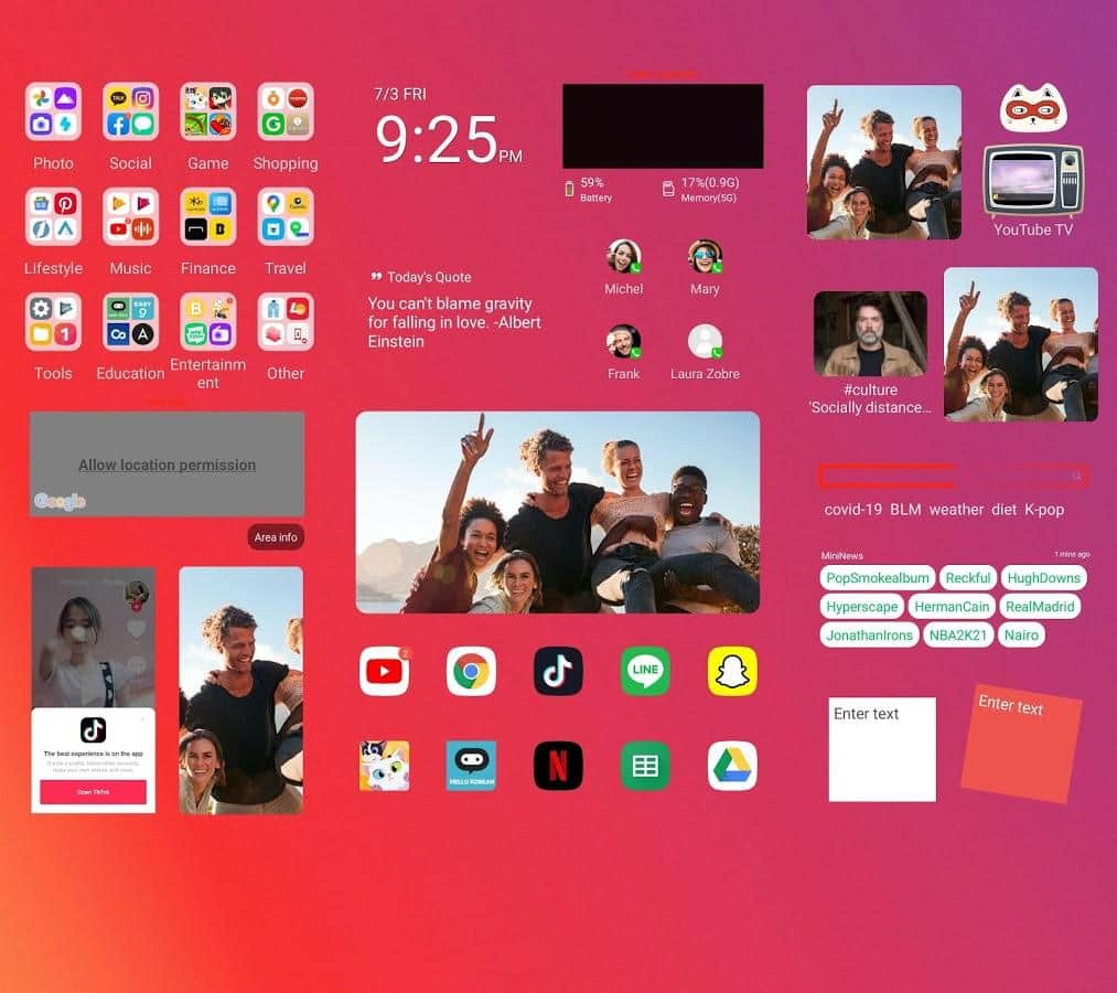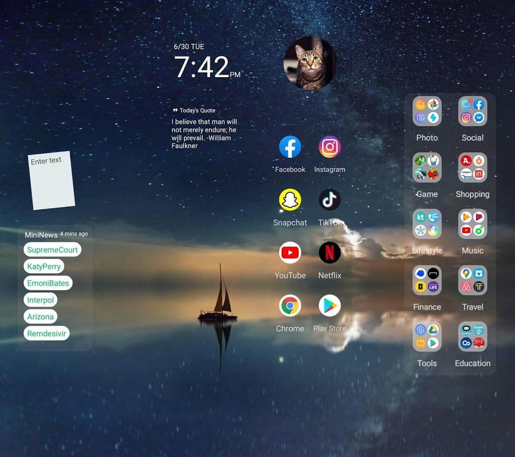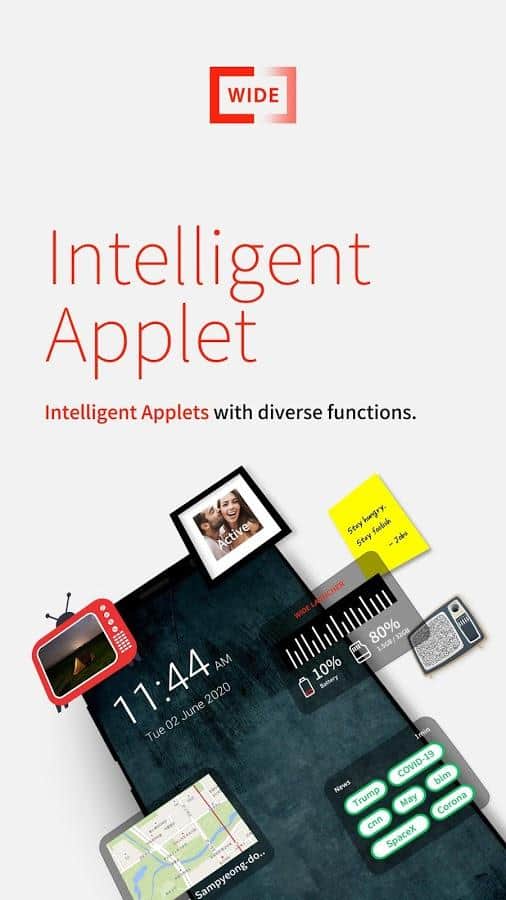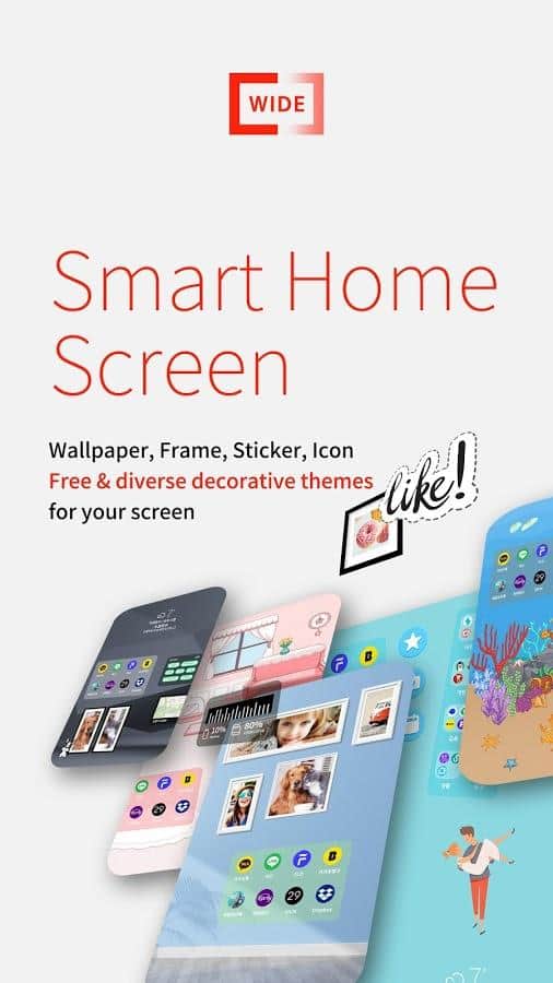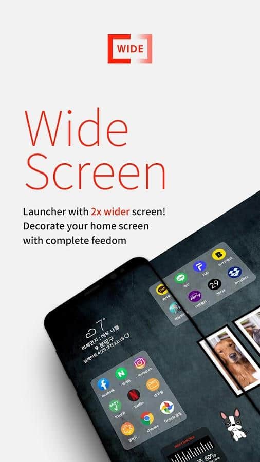При помощи удобного лаунчера Wide Launcher - 2x wider, tile free decorating с увеличенным размером экрана, вам доступны новые функции и возможности для размещения на нем приложений и крупных элементов (виджетов, иконок).