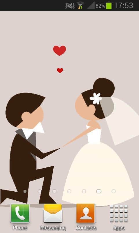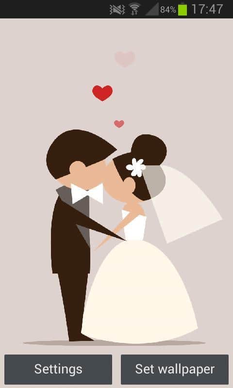Wife and Husband Free LWP – живые обои на андроид с симпатичными мужем и женой в самый чудесный момент их жизни. Установите эти живые обои в свой телефон или планшет и наслаждайтесь романтической атмосферой счастья и безмятежности влюбленной пары которые решили пожениться. Если вы состоите в романтических отношениях, в браке или решили в ближайшее время пожениться, то эти обои поднимут вам настроение, а множество сердечек украсят ваш телефон. Обои обладают хорошей графикой и огромной функциональностью, что позволит вам настраивать обои под себя. Установите эти обои совершенно бесплатно и создайте романтическую обстановку.