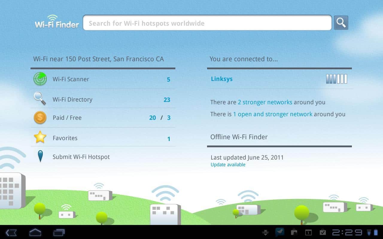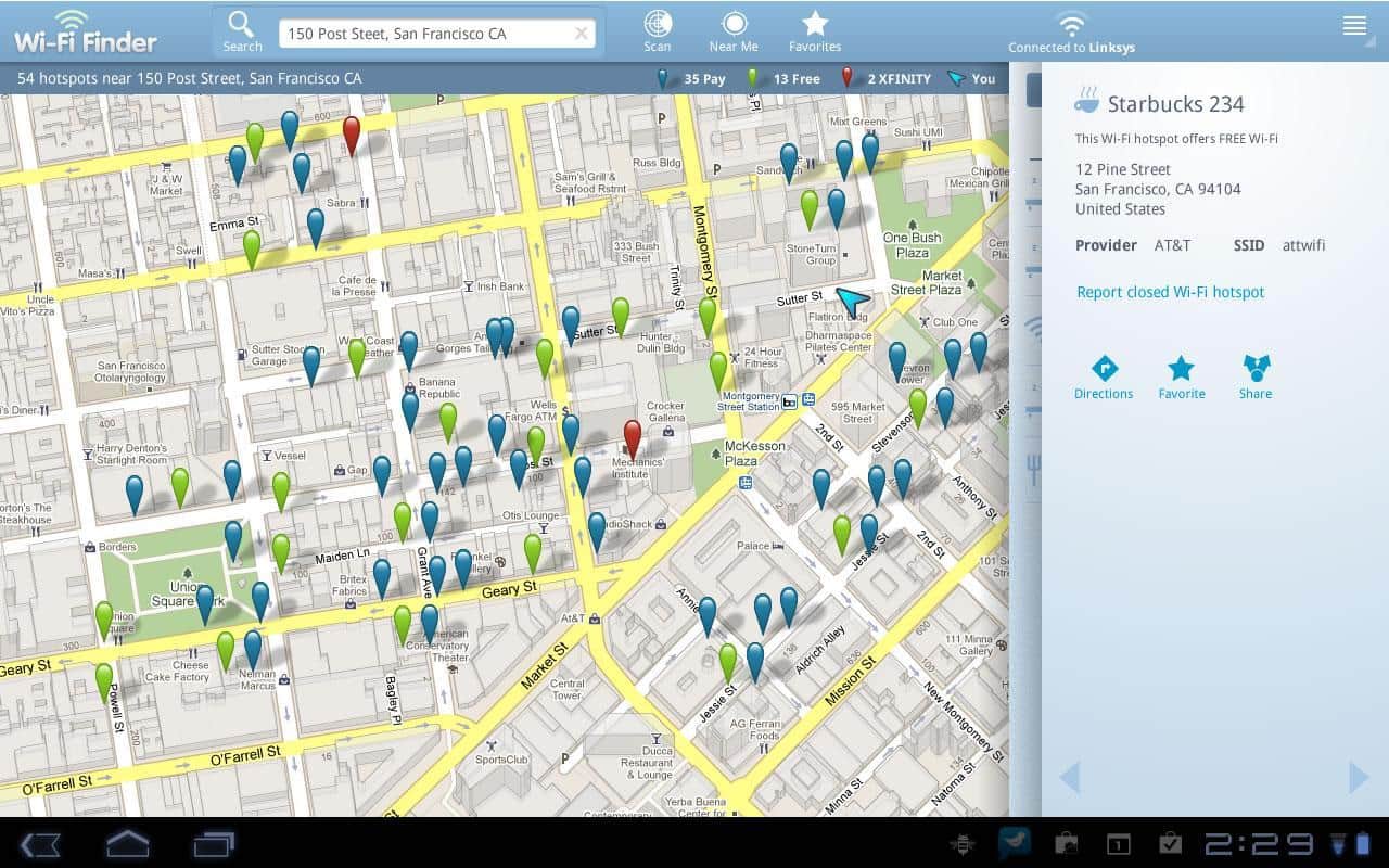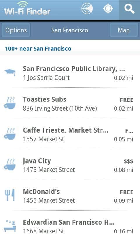 WiFi Finder – замечательная программа появилась теперь и на ваши android девайсы. Многим пользователям просто необходим интернет, некоторым он необходим по работе, другим просто посидеть в социальных сетях. Приложение всегда поможет вам найти бесплатные точки доступа Wi-Fi, которые отмечаются на карте. Теперь вы всегда будете в курсе куда идти. Приложение работает как в оналйн так и в офлайн режиме. Особенности: