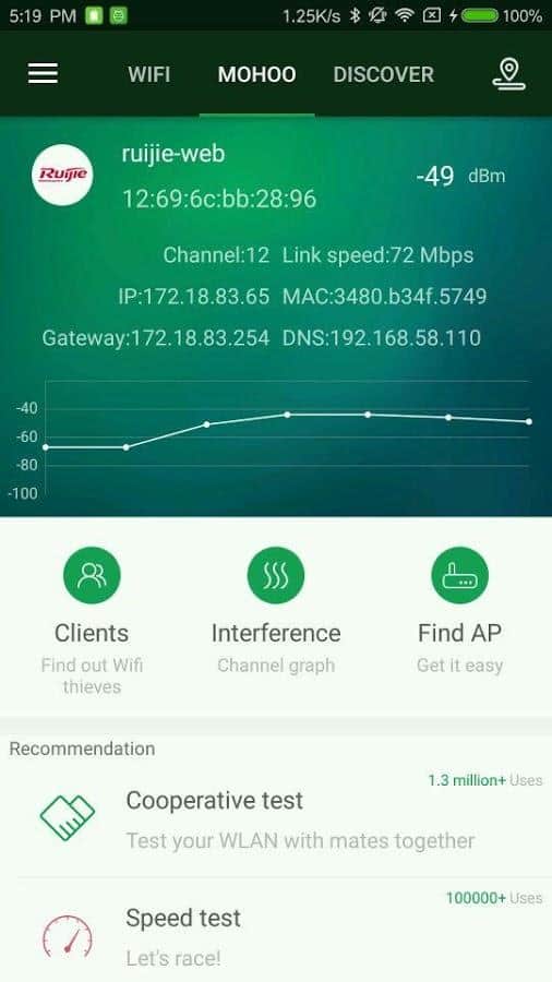 Если вы интересуетесь, есть ли поблизости точки доступа wi-fi, то при помощи приложения WiFi Moho вы сможете получить эту информацию и протестируете имеющиеся данные. Возможности: Высокая скорость и стабильность работы; Безопасность в сети; Лучший уровень сигнала; Оповещения о помехах и перебоях; Несколько профессиональных инструментов: тест качества сигнала, контроль скорости передачи данных, определение количества каналов; Отсутствие рекламы; Доступ к текущему местоположению; Оригинальный дизайн.