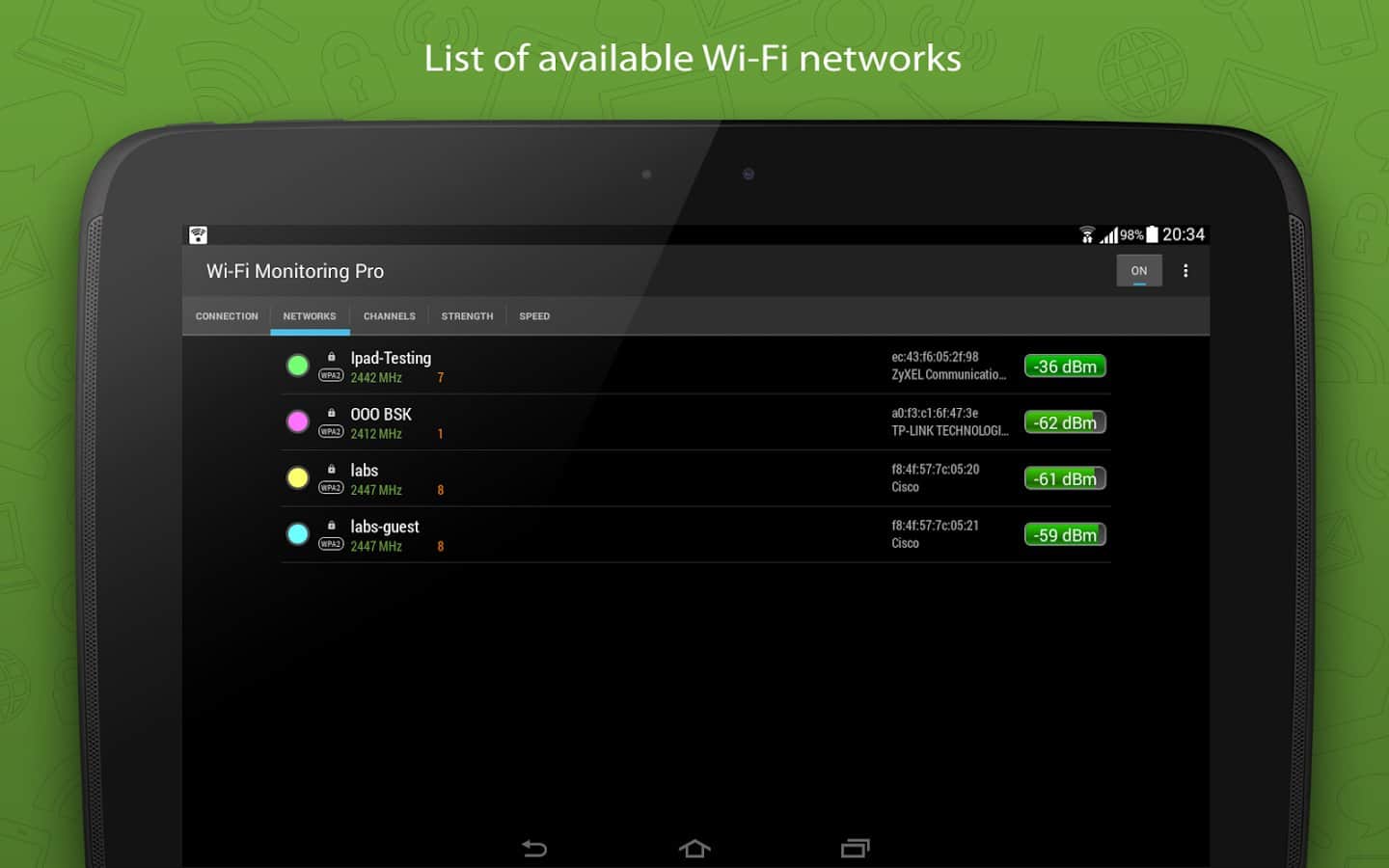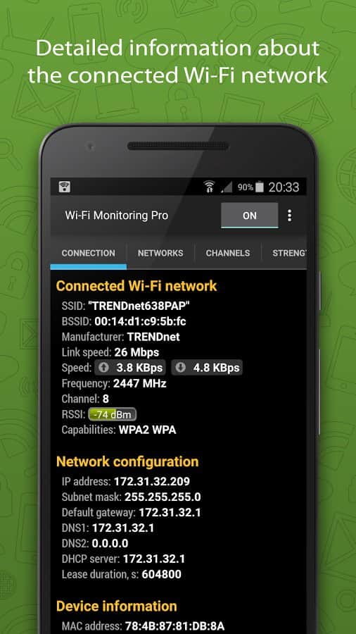 WiFi Monitor Pro - Хотите быть онлайн всегда и везде, но при этом не хотите использовать свой мобильный интернет? Решение очень простое, установите это приложение и ищите доступные точки подключения, таким образом вы сможете найти халявный интернет, подключиться к нему и снова быть в сети. Приложение довольно разностороннее, и может показать вам не только сигнал каждого соединения, но и его качество, а так же скорость и несколько других параметров.