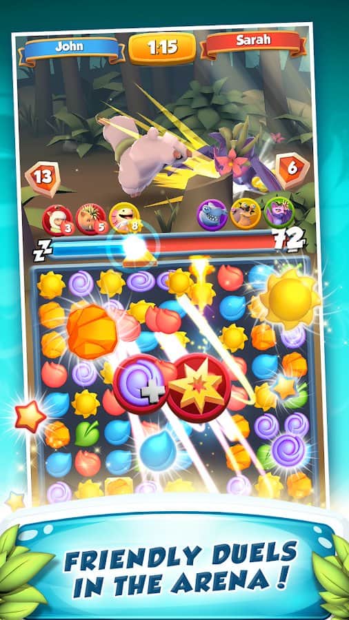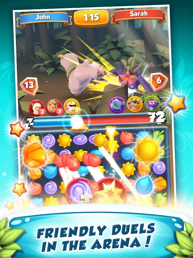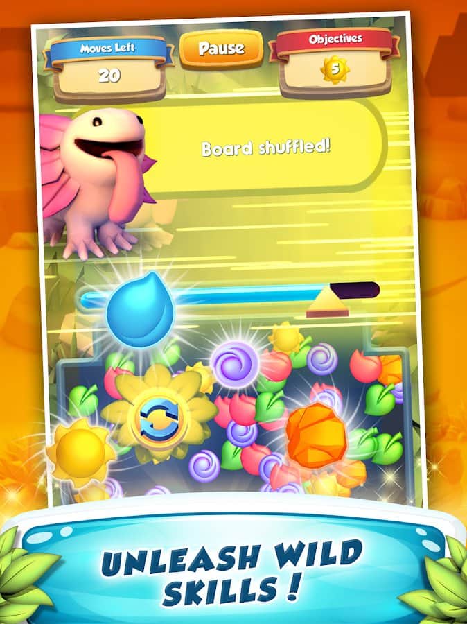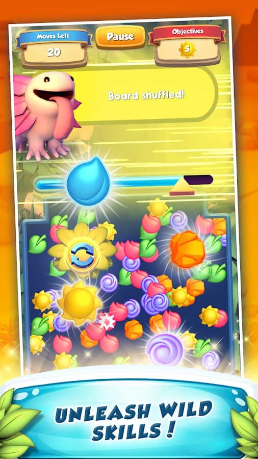 Wild Bloom – красочная игра из жанра три в ряд на андроид, где вы будете помогать милым героям путешествовать по различным локациям. Составляйте ряды из трех и более цветов одного цвета и проходите захватывающие уровни игры. Соберите свою неповторимую команду героев, каждый из которых обладает уникальными навыками и применяйте их в бою против злых монстров. Старайтесь составить как можно более длинные ряды из цветов и нанести разрушительный удар по врагу. Путешествуйте со своей командой по лесам, пещерам и другим локациям и пополняйте свою коллекцию героев.