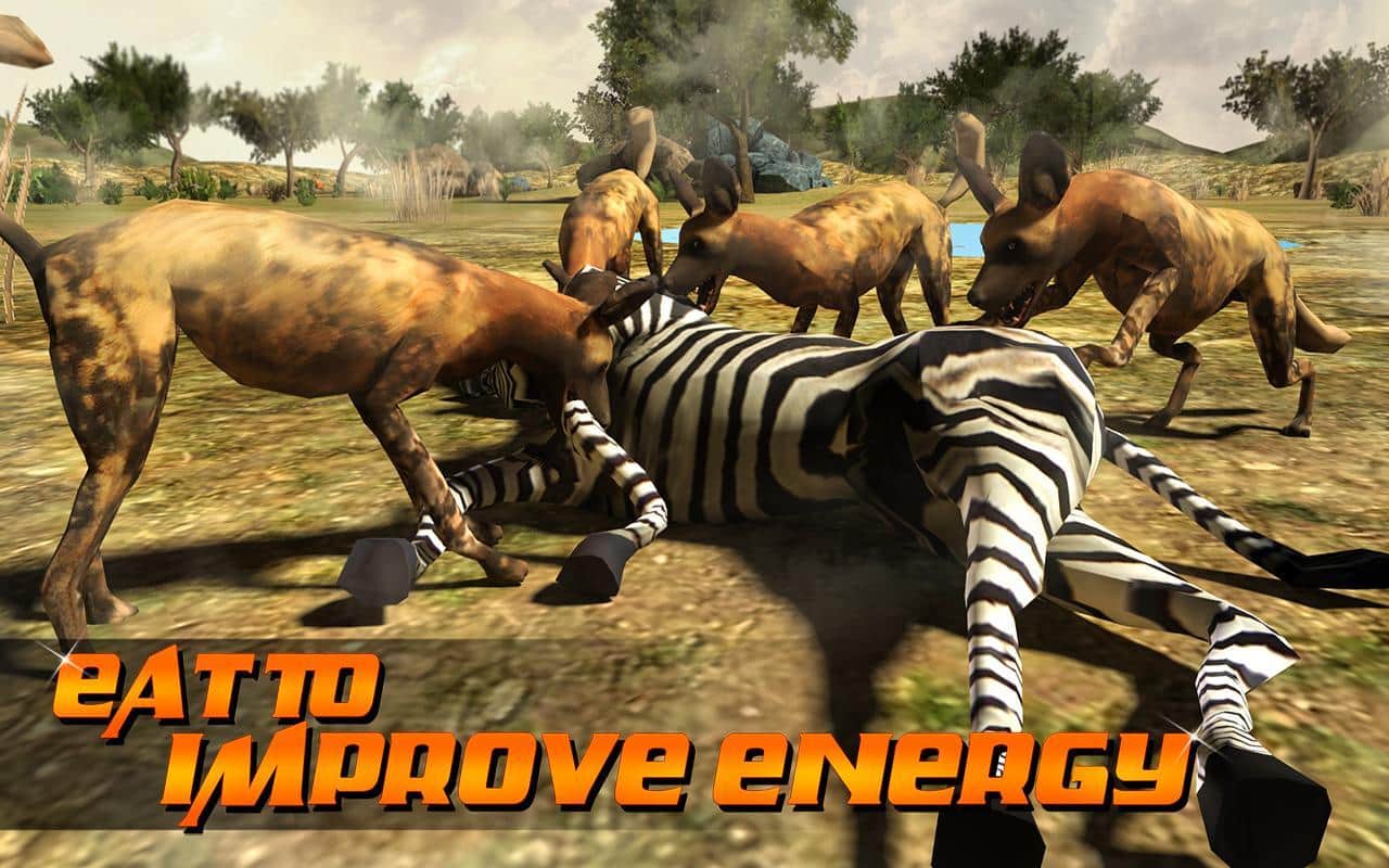 Wild Dog Simulator 3D – симулятор на андроид, по управлению африканской дикой собакой. Начните свое приключение прямо сейчас и выживайте в дикой природе, охотясь на животных и добывая себе пропитание. В этой игре вы будете следовать своим инстинктам, пополняя свою энергию поедая животных после убийства. Выполняйте разнообразные квесты, исследуя бескрайние просторы, и попробуйте разблокировать других собак. В игре реалистичная 3D графика со сменой дня и ночи, а также погодных условий, таких как дождь и засуха. Погрузитесь с головой в этот реалистичный симулятор и насладитесь обстановкой дикой природы.