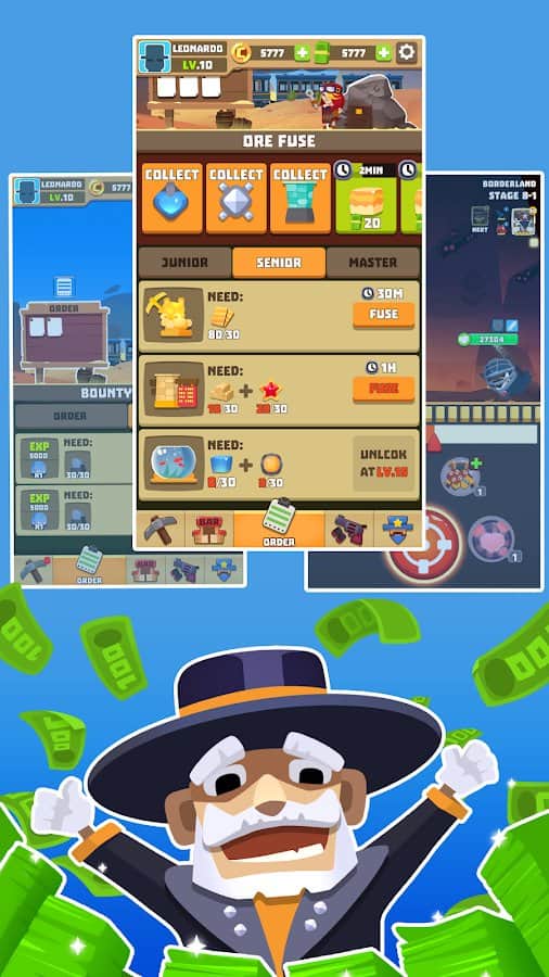 Wild West: Explore Shoot Trade – станьте золотоискателем и отправляйтесь на Дикий Запад. В этой игре вы как и многие авантюристы поддадитесь золотой лихорадке и отправитесь покорять далекие земли. Открывайте свои шахты, нанимайте работников и добывайте ценную руду и минералы. В своих шахтах вы будете добывать золото, железо, драгоценные камни и другие металлы. Покупайте и продавайте свои ресурсы покупателям и получайте хорошую прибыль. Нанимайте на работу отважных ковбоев, которые будут защищать и охранять ваш бизнес. Приобретайте для ковбоев новую экипировку и участвуйте в захватывающих дуэлях.