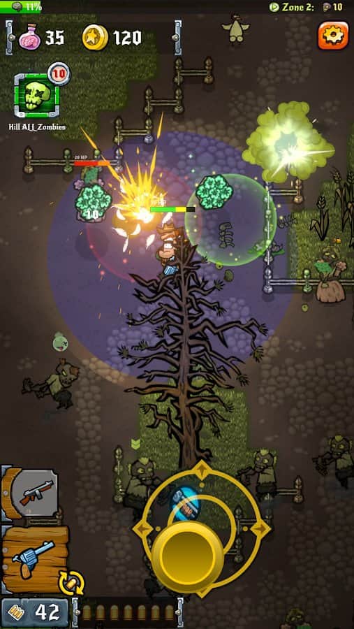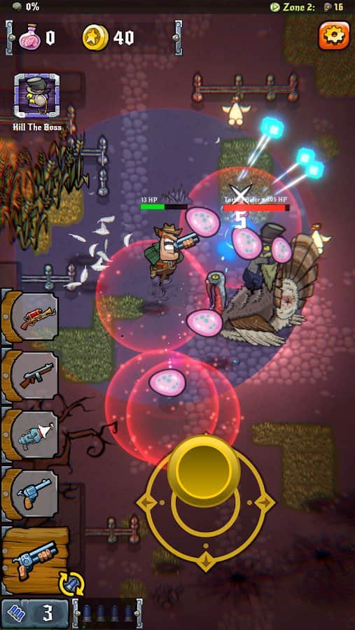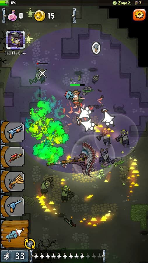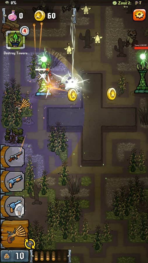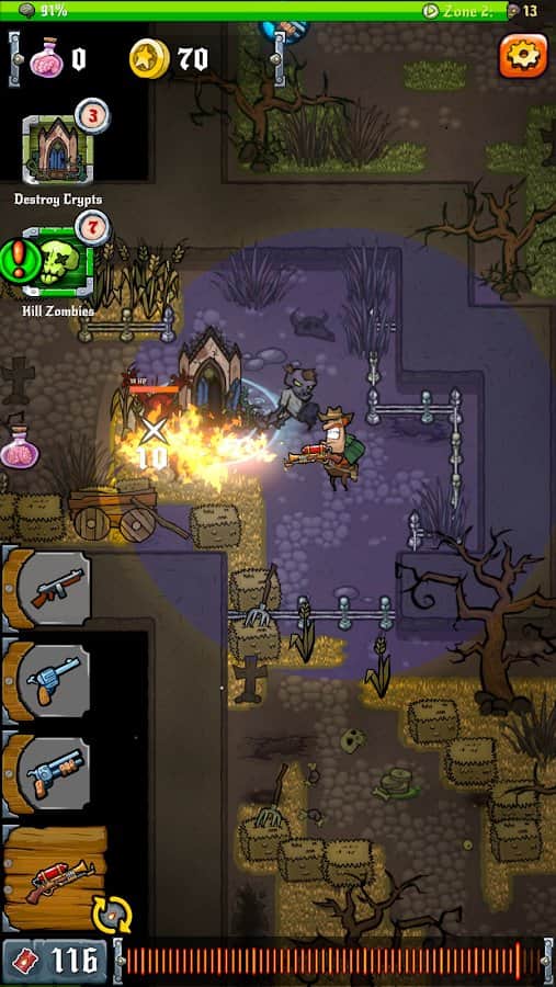 Wild Zombie West - Динамичная игра на андроид, где вы погрузитесь в мир зомби-апокалипсиса. Начни своё путешествие, прикоснувшись к экрану и отправь своего героя в бой. Твоё оружие будет непрерывно прицеливаться и непреклонно охранять, позволяя тебе оставаться на безопасном расстоянии. Этот огненный балет среди мертвецов принесёт тебе необычное оружие - начиная от нарядного куриного пистолета до разрушительного огнемёта, пулемёта и дробовика. Уничтожай зомби на своём пути, взлетай на новый уровень постепенно и великолепные улучшения окружат тебя в этом мире. Зомби предстоит быть побеждёнными, а ты заслуживаешь щедрые награды и почести Так что забудь о страхе и пробейся сквозь зомби-пустошь. Докажи свою непобедимость и скорее стань экспертом в мире, где апокалипсис стал реальностью.