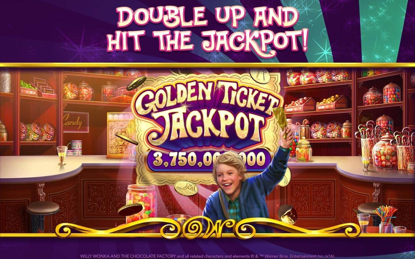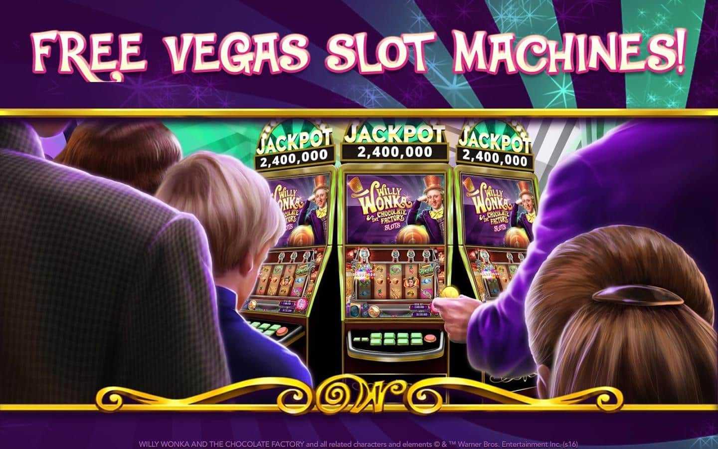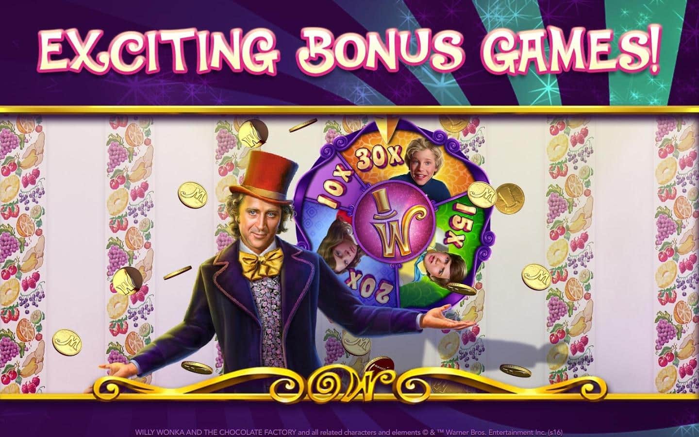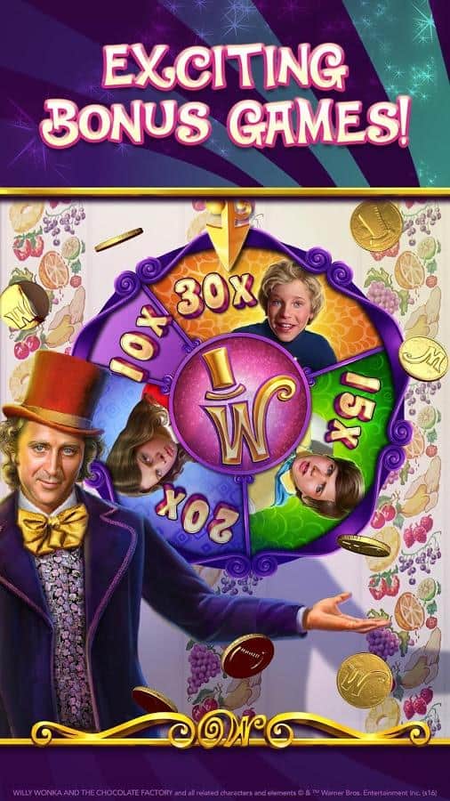 Willy Wonka Slots Free Casino – отличная игра на андроид, где вы погрузитесь в увлекательную атмосферу казино, где будете крутить барабаны слот-машин. В этой игре вы встретитесь с любимым многим персонажем Вилли Вонка и посетите его шоколадную фабрику. Крутите барабаны и выигрывайте замечательные призы, а также получите возможность вместе с Чарли отправится на экскурсию по знаменитой шоколадной фабрике. Открывайте для себя все уровни игры и ближе знакомьтесь с историей шоколадной фабрики и главных героев. Получайте в качестве призов батончики шоколада и отправляйте их своим друзьям.