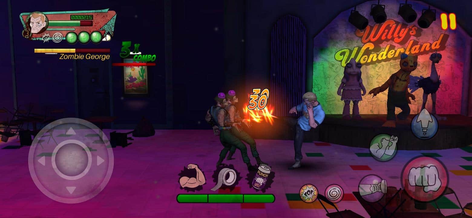 А вот тут самое большое разочарование. Это коротенький битмап без единого намёка на сюжет, при этом с кучей отсебятины. Какие-то зомби, киберсолдаты (хотя на весь фильм было два полицейских), ритуал со слиянием всех аниматронусов в мегаebнинy, битва с сиреной на автостоянке, всё это нах%й не нужная отсебятина, которой очень просто было избежать если бы игра была файтингом, а не бит-м-апом. Кейдж в фильме с аниматронусами в основном раз на раз выходил, что для фатинга в самый раз, зато тут по три-четыре одинаковых юнита на один бой. Игра даже как бит-м-ап слабенькая. Уровни ощущаются одинаково, тупо локация, идущая вправо, с тремя-четырьмя замесами. Бои тоже скучные, мувсет прям очень неочень, никаких тебе комбо, враги часто тупо зажимают в угол и спамят ударами накладывая постоянный микростан, если удаётся сбить всех врагов в одну кучку просто жми кнопку удара и победишь, блок не нужен, ибо во время блока двигаться нельзя и дебаффов на тех кто по этому блоку бьёт не накладывается. Ещё зачем-то урон отображается в цифрах, как буд-то в игре должна была быть прокачка, но её нет, а увеличить урон можно только временным баффом. Запороли идею и всё. Больше 2/5 рука ставить не подымается.