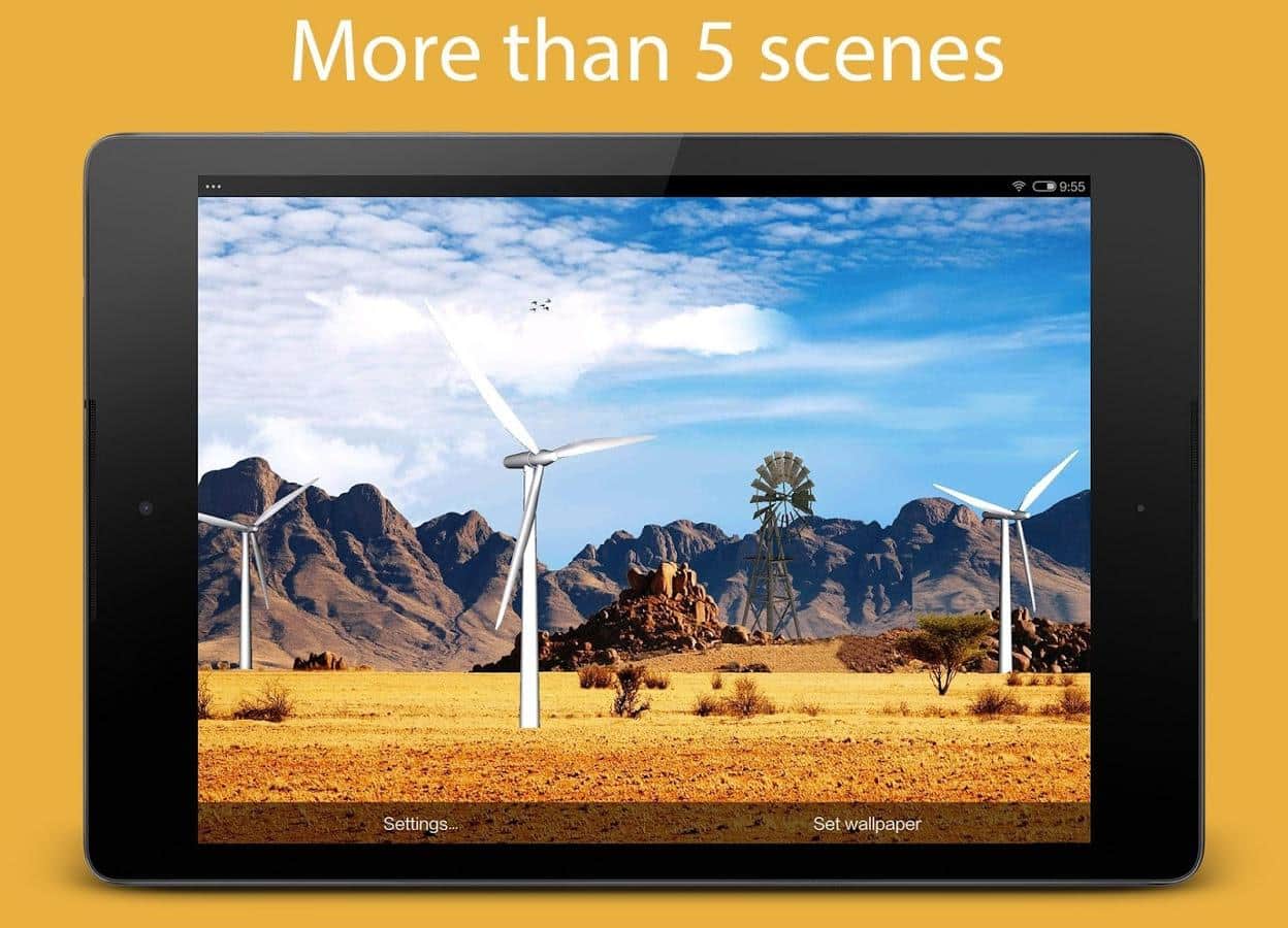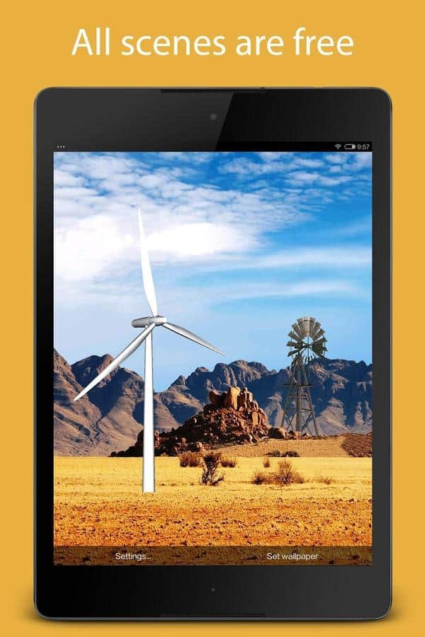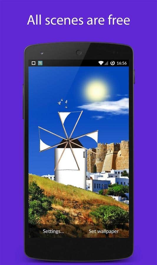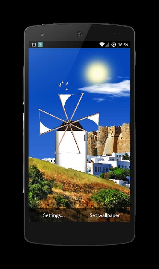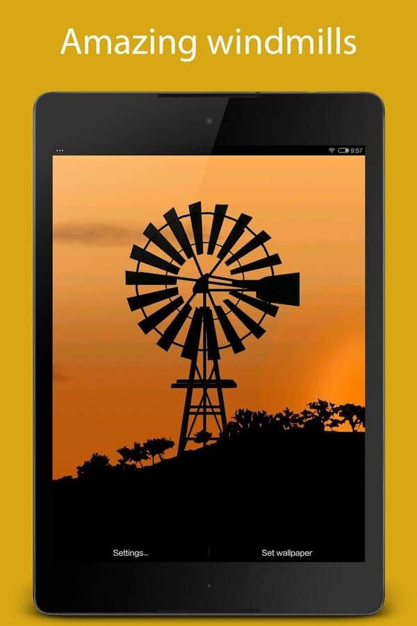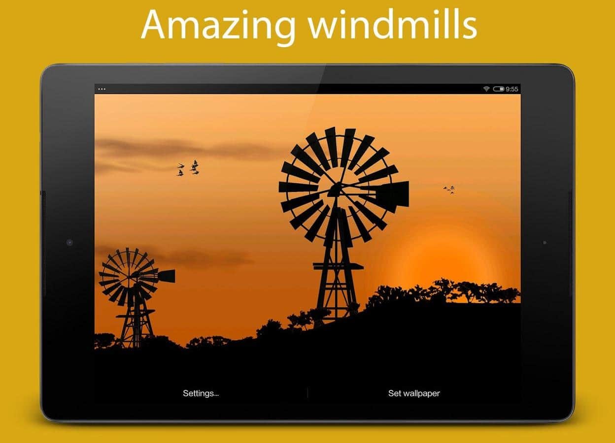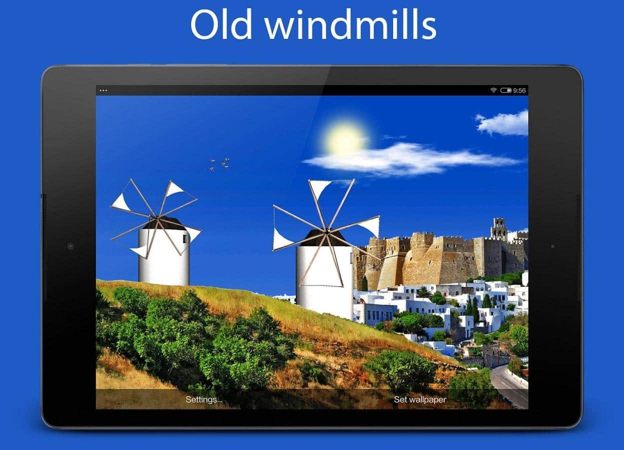 Windmill Live Wallpaper - живые обои на ваш телефон или планшет где вы будете наслаждаться ветряными мельницами. Если вы любите смотреть на ветряные мельницы, как они вращают свои лопасти при движении ветра и вырабатывают тем самым энергию, то эти живые обои для вас. Установив эти обои вы получите большое разнообразие различных анимированных картинок с изображением на них старинных каменных мельниц, которыми славиться Голландия и современных ветрогенераторов, которые расположены на всем побережье солнечной Калифорнии. Эти обои порадуют вас разнообразными настройками и горизонтальной ориентацией.