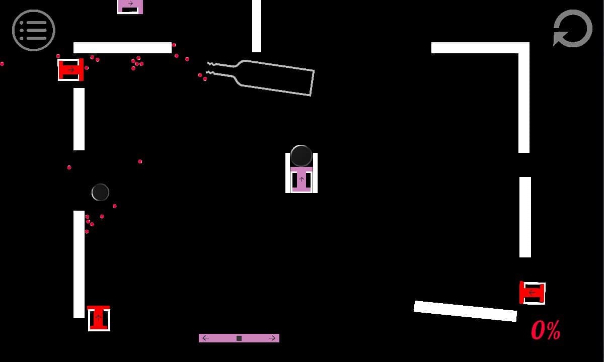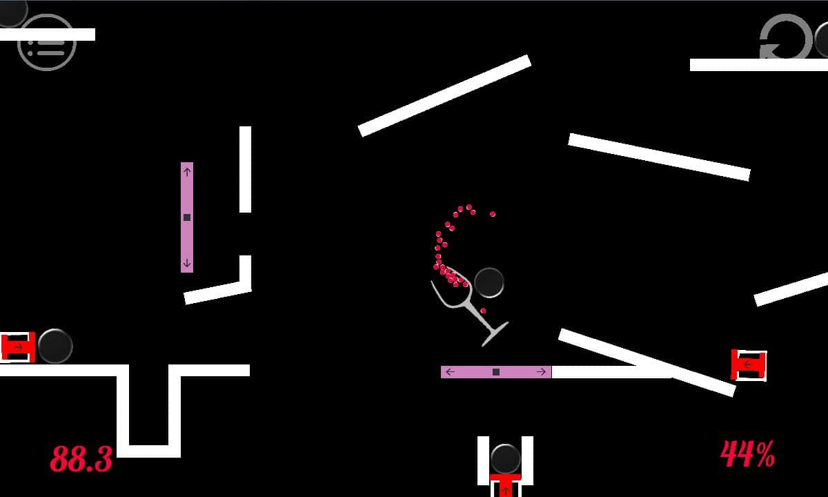 WineCat – игра головоломка на андроид, в которой вам выпадет учесть наливать вино в бокалы. На уровне есть бутылка с вином и бокал, а также множество различных преград и препятствий, которые будут мешать либо помогать вам, наливать вино в бокал. Открывая бутылку с вином из нее начинают катиться мельчайшие шарики, которые вам и надо направить в бокал, используя для этого свою голову и пальцы. Передвигайте преграды и взаимодействуйте с объектами так чтобы пройти как можно больше уровней и побить все рекорды. Эта игра порадует вас реалистичной физикой и черно-белым дизайном.