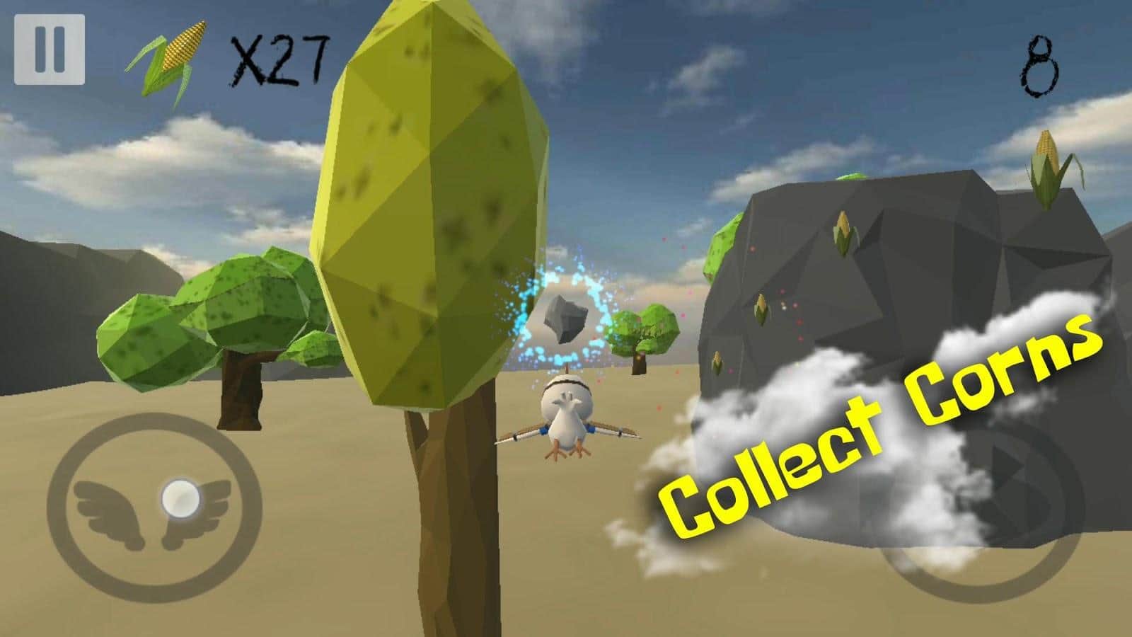 Wings of Cardboard – управляйте полетом цыпленка который всю жизнь хотел летать. Наш главный герой всегда хотел парить в небесах, но природа не дала ему специальные крылья для полета. Собрав крылья из картона наш герой осуществил свою мечту и теперь вашей задачей будет помочь ему продержатся как можно дольше в небе. Управляйте полетами цыпленка и помогите ему обойти все преграды и препятствия у себя на пути в виде скал, деревьев и других преград. Перемещайте героя в разные стороны и проходите контрольные точки. На трассах этой игры вы повстречаете множество усилений и бонусов.