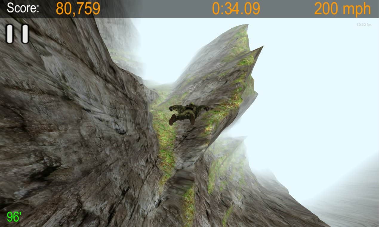 Wingsuit - Proximity Project - игра на андроид в которой вы можете получить кучу адреналина от прыжков в вингсьюте (костюм-крыло). Летаем с бешеной скоростью возле опасных отвесных скал. Чем ближе и быстрее вы приближаетесь к опасным участкам тем больше бонусных очков вы зарабатываете. В конце уровня на заработанные очки вы можете открывать новые участки для своих полётов.