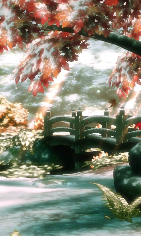 Winter Grove 3D – красивые живые обои для андроид с сюжетом ранней зимы. Еще не успел пестрый клен сбросить с себя осенний наряд, как уже украсить его поспешил первый снег зимы, накрыв мягким белым палантином. Лишь изредка легкий ветерок, сорвет осенний лист с дерева и позволит ему плавно упасть на землю. Старый деревянный мост, еще не замерзшая речка, зеленая трава, укрытая снегом – все это неотъемлемая часть сюжета смены одного сезона другим. Красиво, мерно, таинственно.