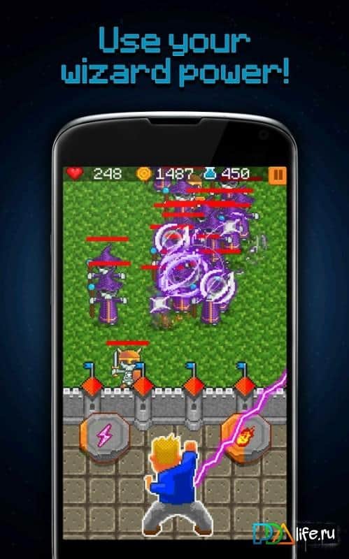 Wizard fireball defense – бросьте все свои силы на защиту замка от армии монстров, скелетов, зомби и другой нежити. В этой игре вы будете выступать как самый могущественный маг в королевстве, который самостоятельно может дать отпор врагам. С помощью мощных заклинаний обрушивайте на толпу приближающихся врагов молнии, огненные шары, а также мечи и заморозку. Защитите замок от разрушения и изучайте новые заклинания и умения, которые пригодятся вам в дальнейших боях. Побеждайте сильных боссов и станьте самым способным и величайшим магом в этой игре. Игра порадует вас приятной графикой в стиле ретро, качественной музыкой и таблицей лидеров.