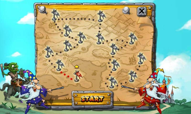 Wizards & Goblins - ещё стратегия по типу tower defense для андроид. Противные гоблины отправляются в завоевательный поход с целью овладеть замками людей. Но на помощь людям решили прийти гильдии магов. Теперь, как и в любой TD для андроид, вам предстоит расставить магов так, чтоб их эффективность была максимальна. За уничтожения каждого гоблина люди бут вам начислять премию, которую Вы сможете потратить на изучение или повышения силы боевой магии. У гоблинов есть один маршрут к замку, но он имеет развилки, так что используйте верную стратегию!