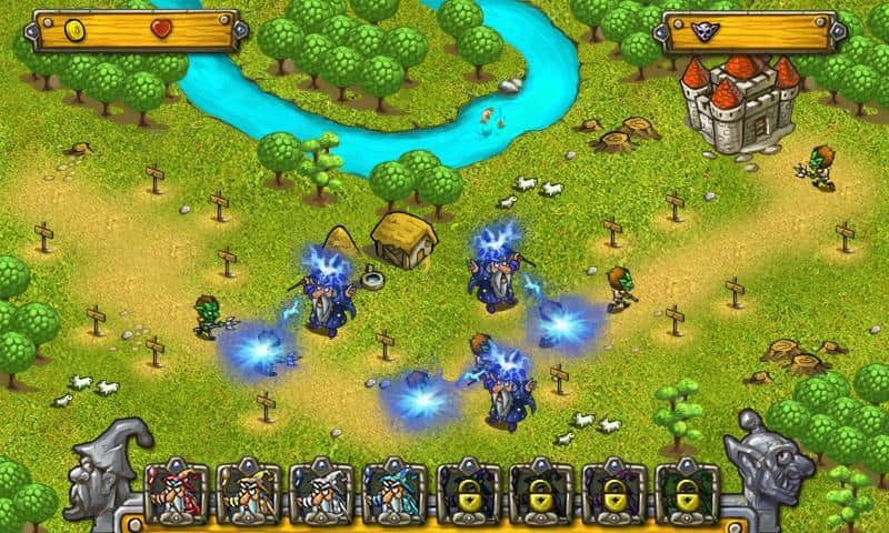 Игра Wizards & Goblins для андроид пока что имеет всего 15 уровней, но в вашем распоряжении будет 8 типов башен, по развлекаться будет с чем.