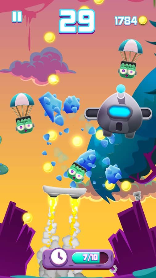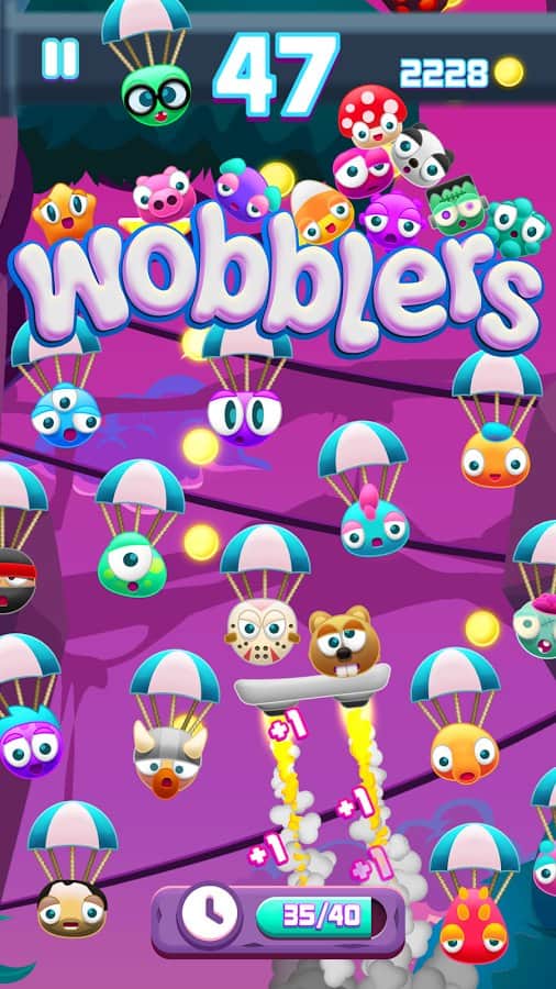 Не смотря на то что в последнее время мобильные устройства развиваются завидными темпами и уже многие планшеты и смартфоны обладают внушительными вычислительными ресурсами, которые не многим отстают от настольных игровых платформ, что конечно же позволяет выпускать на мобильных гаджетах довольно требовательные игры, тем не менее различные аркады и тайм-киллеры остаются основной нишей для разработчиков мобильных игр. Wobblers - забавная игра представляющая из себя нечто среднее между джампером и ранром. Играть вам предстоит в роли некого космического существа которое управляет ракетной доской, а вам необходимо помочь герою взобраться как можно выше, собрать максимальное количество призов и при этом не свалиться с доски.