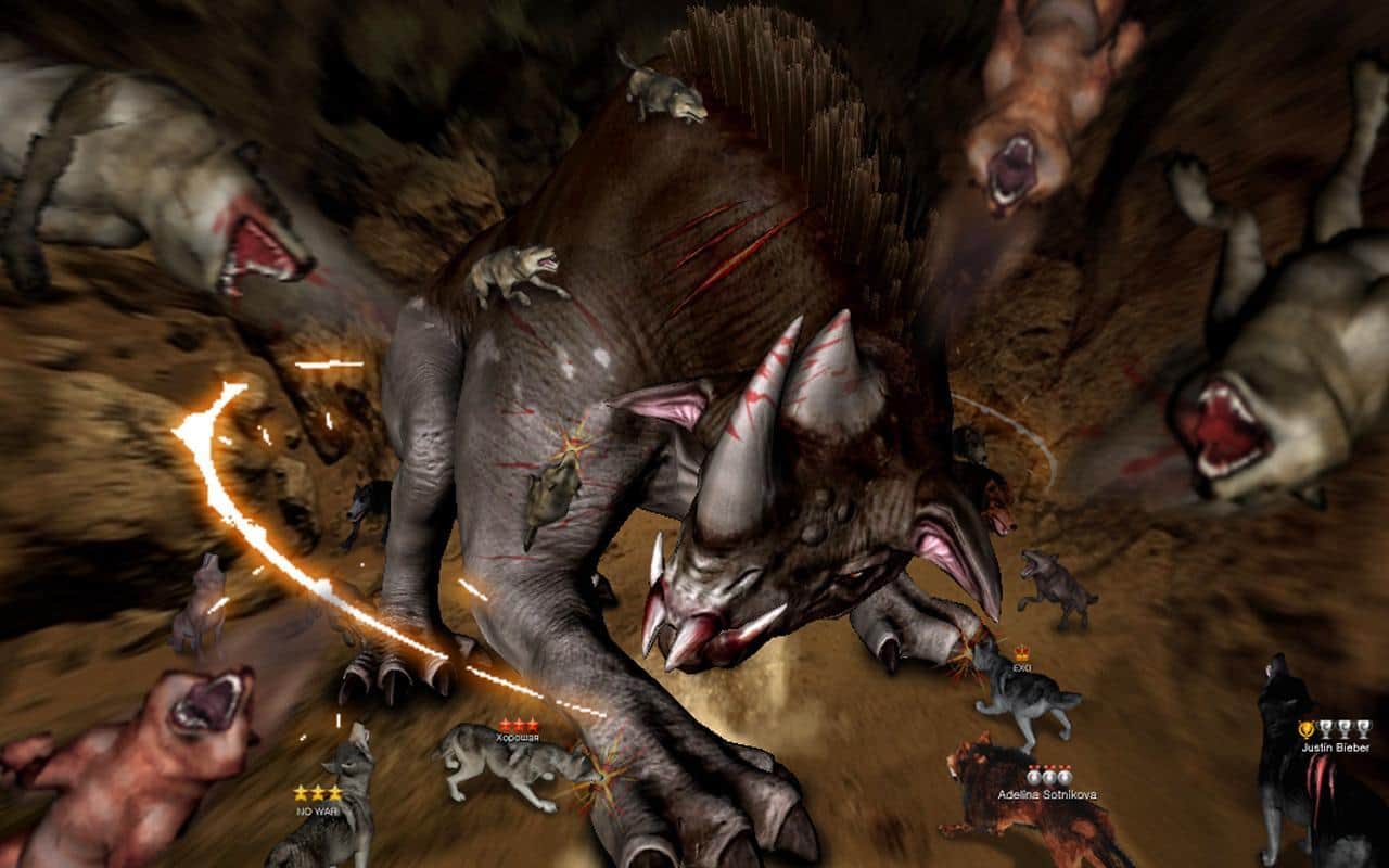 Wolf Online - начинается жестокая и страшная война между тремя семействами волков. Выбираем одну из трёх сторон и стараемся сделать всё возможное чтобы ваш клан доминировал над остальными. В игре есть множество зверей, которых можно поделить на два типа. Первые могут напасть на вас: тигр, лев, носорог и т.д., а вторые будут ждать пока вы их не съедите: заяц, олень и другие. Также в игре могут встречаться сильнейшие монстры которых в одиночку вам не победить. Зовите на помощь своих друзей и сообща пробуйте его одолеть. В игре развитая система прокачки вашего бесстрашного волка.