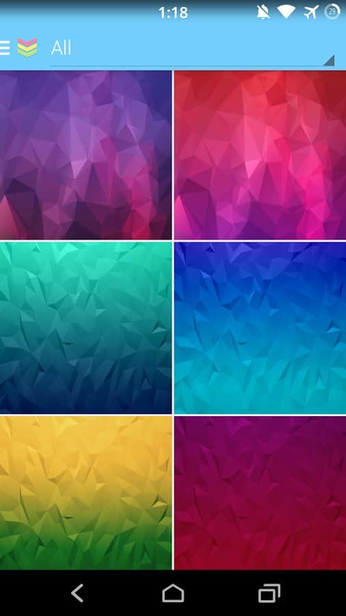 Wolz - Wallpaper Pack - Огромная коллекция, которая включает в себя более чем 250 обоев, для вашего рабочего стола. Все обои сделаны в разных тонах, и цветах. Так же вы сможете настраивать тот или иной оттенок, вашего рабочего стола. Сделаны они довольно простенько, но при этом очень качественно, четкость и глубина цвета очень приятны для глаз. Так же разработчики пообещали частые обновления, и добавления новых видов обоев, а так же новых сочетаний цветов. В этом паке обоев, каждый сможет найти что то на свой вкус. Интуитивно понятное меню, в котором содержится минимум кнопок, лишь те, которые нужны для выбора и применения обоев.