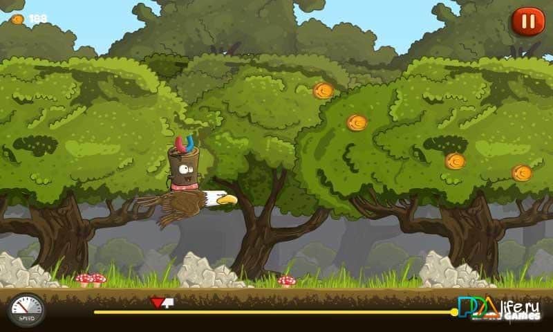 Wood Fly Away – веселая игра в которой вы будете помогать бревну сбежать из леса который атакуют злые лесорубы. Лес в котором жил наш забавный персонаж стали стремительно вырубать и чтобы не погибнуть от бензопилы наш герой решается бежать. С помощью своего друга бобра наш герой как на катапульте летает через все преграды и препятствия, вставшие у него на пути. Запускайте бревно в полет и летите как можно дальше, обходя циркулярные пилы, шипы и другие опасные ловушки, расставленные лесорубами. По пути собирайте различные бонусы и усиления, которые помогут вам завершить как можно больше уровней. Игра с реалистичной физикой и простым управлением подойдет как для детей, так и для их родителей.