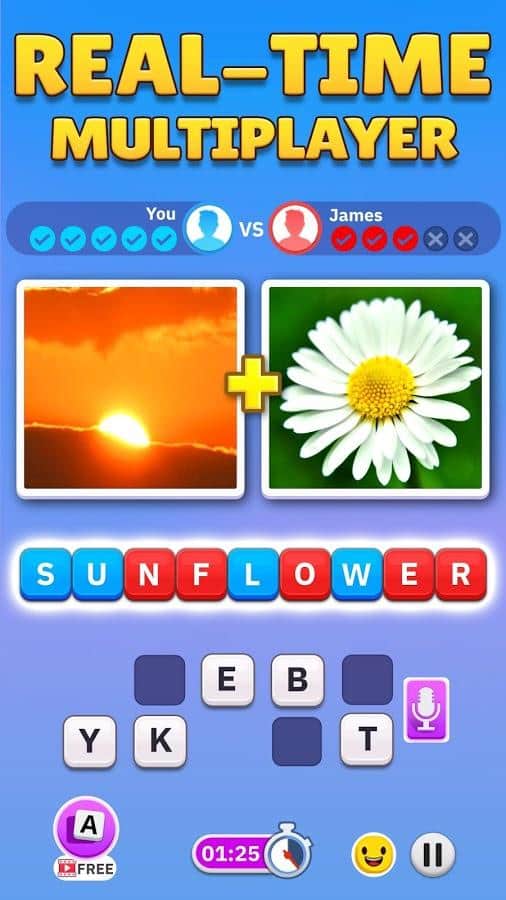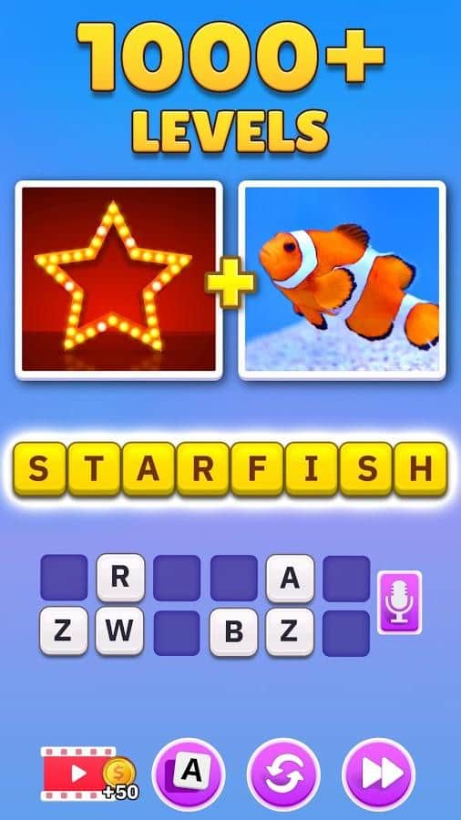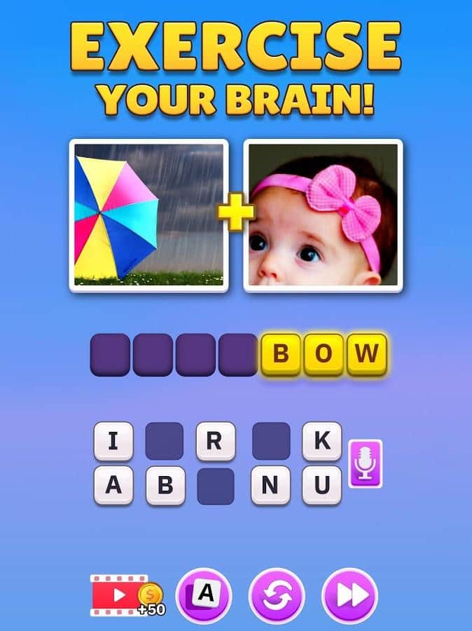 Word Pics - Word Games – игра, которая понравится любителям визуальных загадок и головоломок. Перед вами будет 2 картинки, они обе несут определённое значение, попробуйте обьединить смысл и узнать, какое слово там зашифровано. Используйте подсказки, играйте с семьей и друзьями, развивайте мышление и пополняйте словарный запас. Играйте в классическом, режиме эксперта или многопользовательском и соревнуйтесь с другими игроками. Зарабатывайте баллы и награды и станьте лидером. Выходите за рамки стандартного мышления.